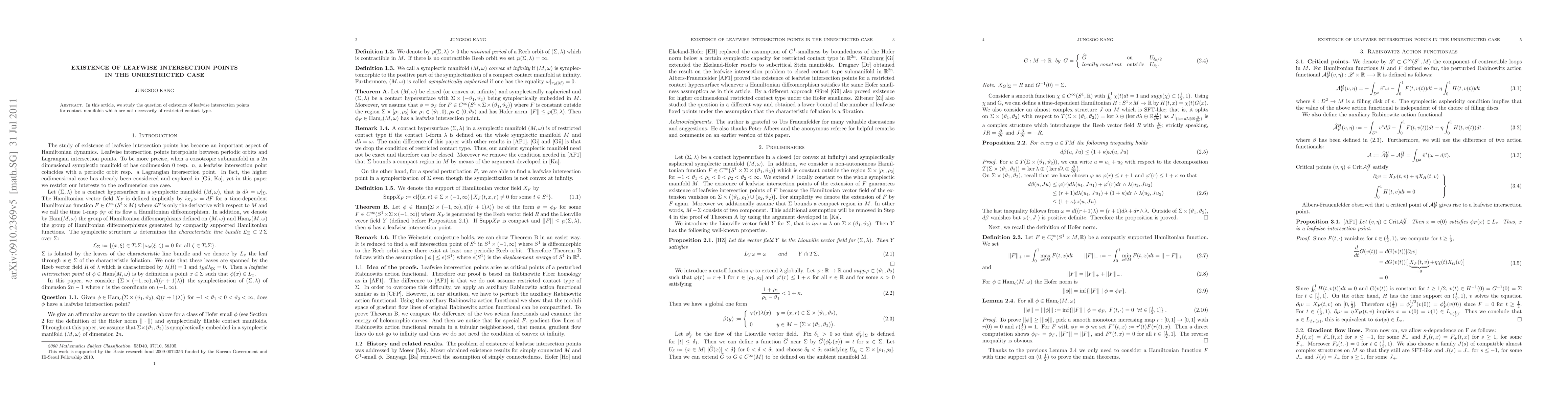 Summary: This paper explores the existence of leafwise intersection points in unrestricted contact manifolds, demonstrating that such points can be found on the symplectization for specific Hamiltonian functions, even when the contact structure is not restricted.