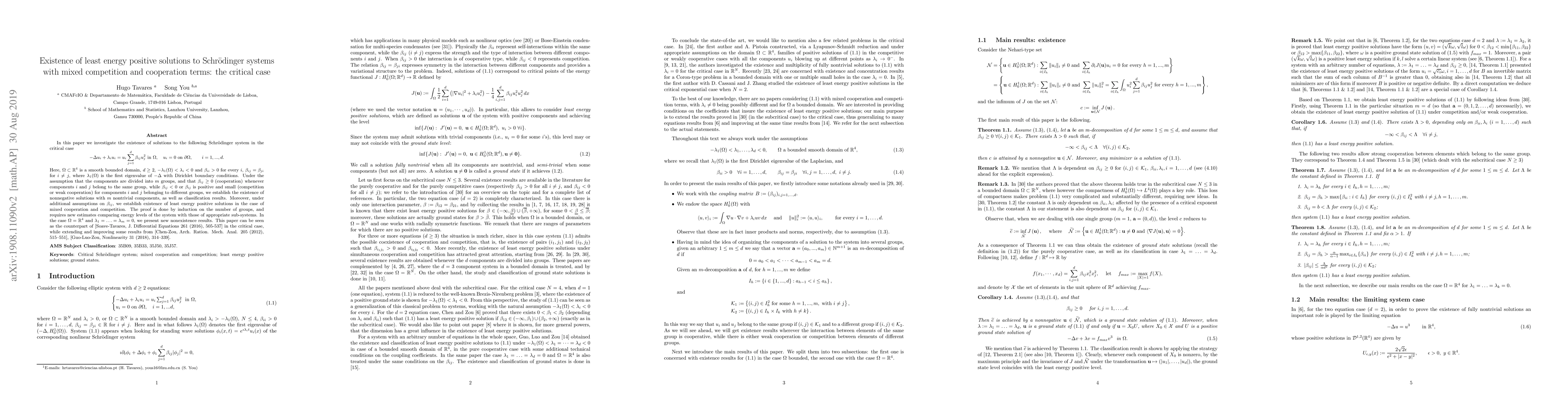 In this paper we investigate the existence of solutions to the following Schr\"{o}dinger system in the critical case \begin{equation*} -\Delta u_{i}+\lambda_{i}u_{i}=u_{i}\sum_{j = 1}^{d}\beta_{ij}u_{j}^{2} \text{ in } \Omega, \quad u_i=0 \text{ on } \partial \Omega, \qquad i=1,...,d. \end{equation*} Here, $\Omega\subset \mathbb{R}^{4}$ is a smooth bounded domain, $d\geq 2$, $-\lambda_{1}(\Omega)<\lambda_{i}<0$ and $\beta_{ii}>0$ for every $i$, $\beta_{ij}=\beta_{ji}$ for $i\neq j$, where $\lambda_{1}(\Omega)$ is the first eigenvalue of $-\Delta$ with Dirichlet boundary conditions. Under the assumption that the components are divided into $m$ groups, and that $\beta_{ij}\geq 0$ (cooperation) whenever components $i$ and $j$ belong to the same group, while $\beta_{ij}<0$ or $\beta_{ij}$ is positive and small (competition or weak cooperation) for components $i$ and $j$ belonging to different groups, we establish the existence of nonnegative solutions with $m$ nontrivial components, as well as classification results. Moreover, under additional assumptions on $\beta_{ij}$, we establish existence of least energy positive solutions in the case of mixed cooperation and competition. The proof is done by induction on the number of groups, and requires new estimates comparing energy levels of the system with those of appropriate sub-systems. In the case $\Omega=\mathbb{R}^4$ and $\lambda_1=\ldots=\lambda_m=0$, we present new nonexistence results. This paper can be seen as the counterpart of [Soave-Tavares, J. Differential Equations 261 (2016), 505-537] in the critical case, while extending and improving some results from [Chen-Zou, Arch. Ration. Mech. Anal. 205 (2012), 515--551], [Guo-Luo-Zou, Nonlinearity 31 (2018), 314--339].