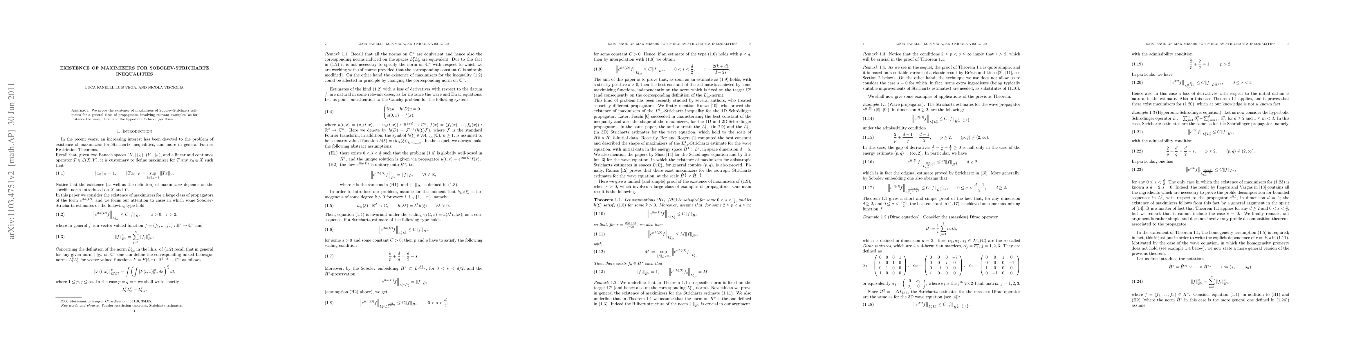 This paper establishes the existence of maximizers for Sobolev-Strichartz inequalities across a broad range of propagators, including wave, Dirac, and hyperbolic Schrödinger flows. The results provide significant insights into the behavior of these mathematical frameworks.