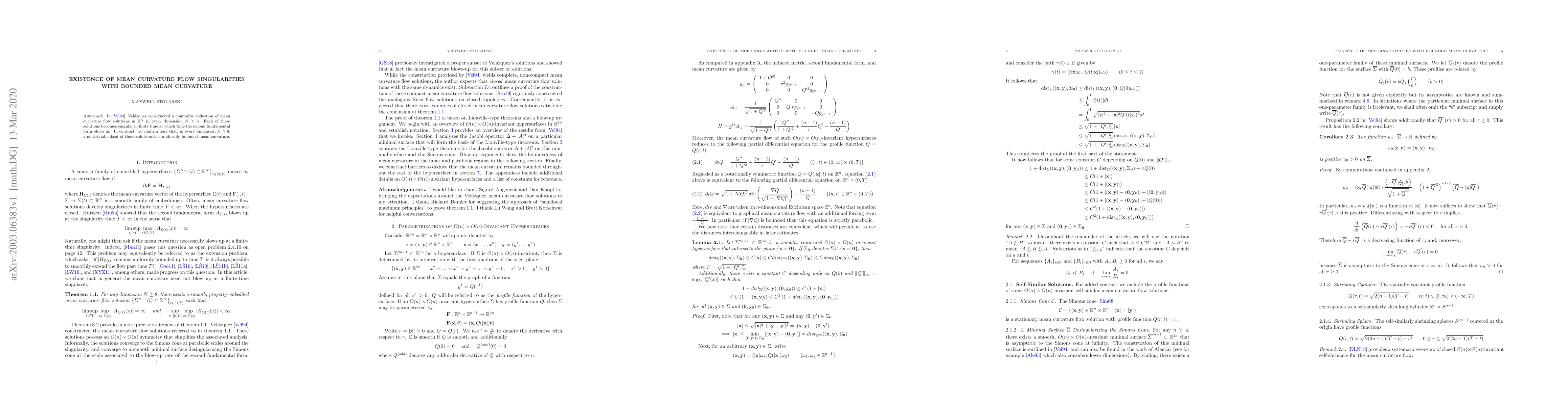In [Vel94], Velazquez constructed a countable collection of mean curvature flow solutions in $\mathbb{R}^N$ in every dimension $N \ge 8$. Each of these solutions becomes singular in finite time at which time the second fundamental form blows up. In contrast, we confirm here that, in every dimension $N \ge 8$, a nontrivial subset of these solutions has uniformly bounded mean curvature.