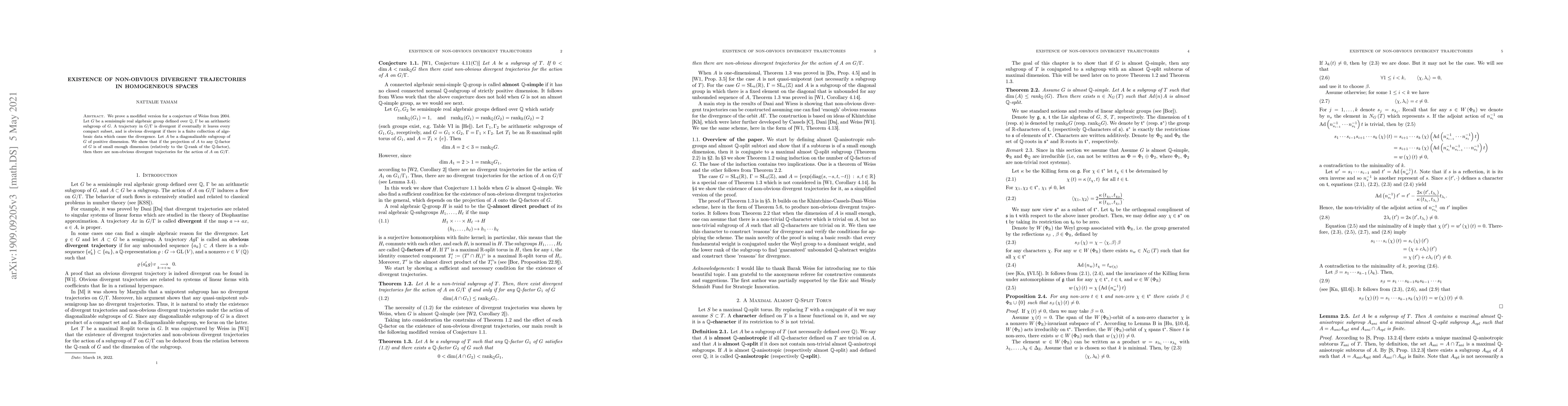 This paper proves a conjecture by Weiss regarding the existence of non-obvious divergent trajectories in homogeneous spaces. It shows that for a semisimple real algebraic group with an arithmetic subgroup, non-obvious divergent trajectories exist if the projection of a certain diagonalizable subgroup to any $\mathbb{Q}$-factor is sufficiently small.