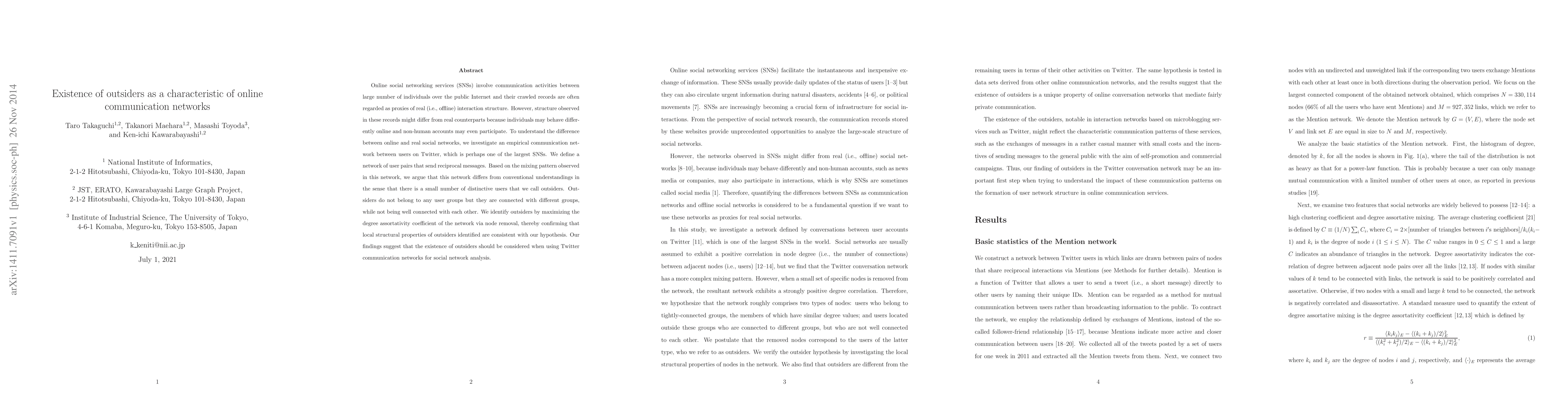 A study on Twitter communication networks found that a small group of users (outliers) exist outside of traditional user groups, forming connections with different groups but not with each other, highlighting the need to consider outsiders in social network analysis.