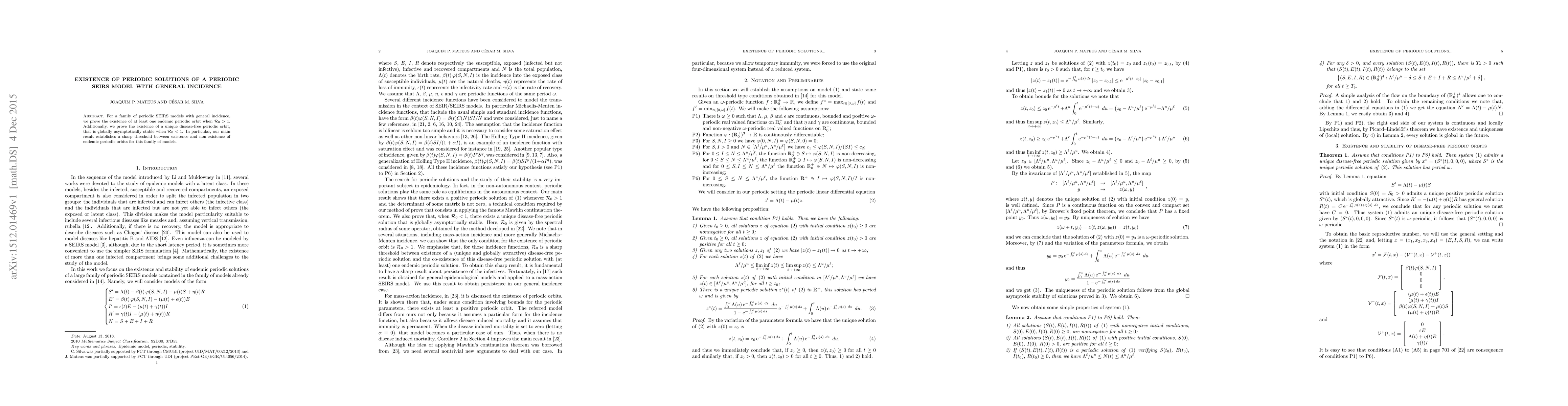 For a family of periodic SEIRS models with general incidence, we prove the existence of at least one endemic periodic orbit when R_0>1. Additionally, we prove the existence of a unique disease-free periodic orbit, that is globally asymptotically stable when R_0<1. In particular, our main result establishes a sharp threshold between existence and non-existence of endemic periodic orbits for this family of models.