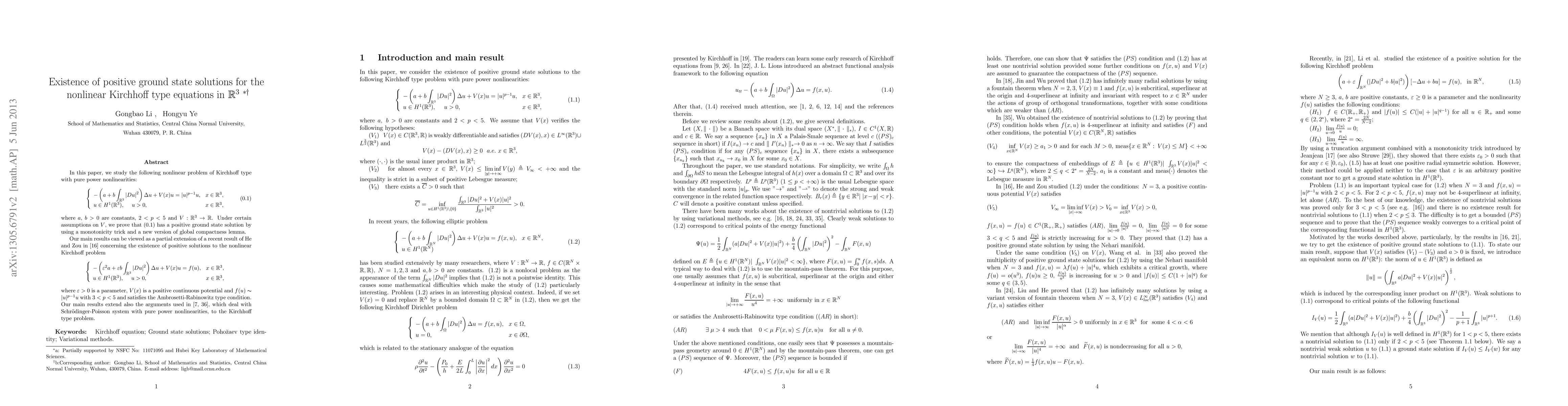 This paper investigates the existence of positive ground state solutions for a nonlinear Kirchhoff type equation in \( \mathbb{R}^3 \) with pure power nonlinearities. By employing a monotonicity trick and a new global compactness lemma, the authors prove the existence of such solutions under certain conditions on the potential \( V(x) \).