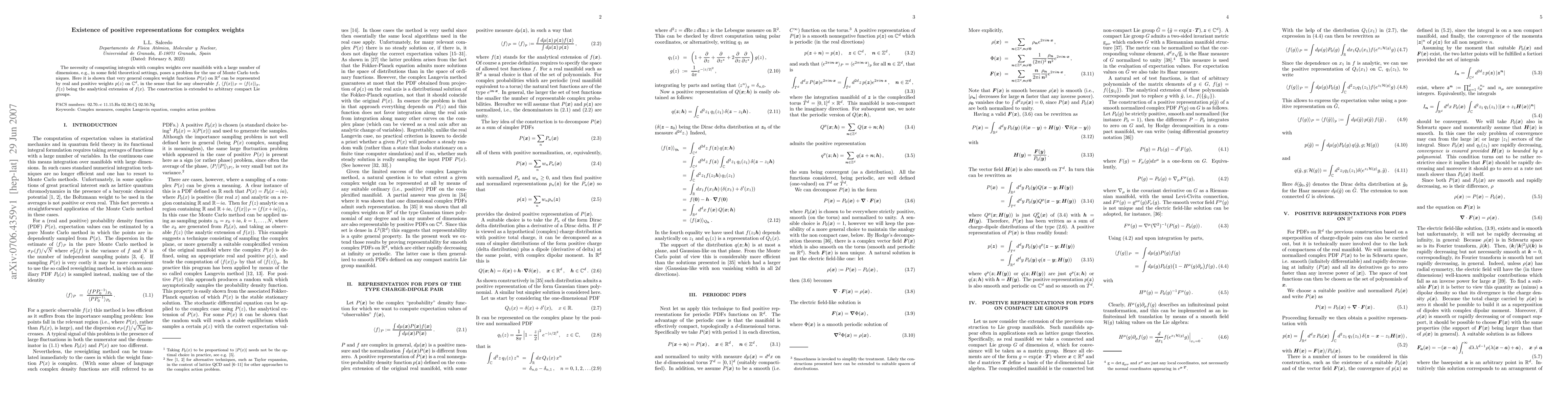 general complex weight functions P(x) on R^d can be represented by real and
