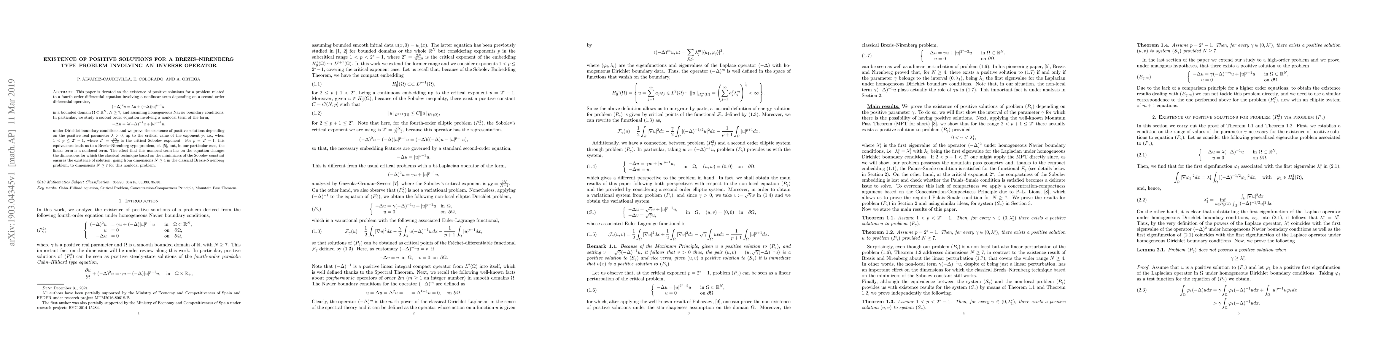 This paper is devoted to the existence of positive solutions for a problem related to a fourth-order differential equation involving a nonlinear term depending on a second order differential operator, $$(-\Delta)^2 u=\lambda u+ (-\Delta)|u|^{p-1}u,$$ in a bounded domain $\Omega\subset\mathbb{R}^N$, $N\geq 7$, and assuming homogeneous Navier boundary conditions. In particular, we study a second order equation involving a nonlocal term of the form, $$-\Delta u=\lambda (-\Delta)^{-1} u+|u|^{p-1}u,$$ under Dirichlet boundary conditions and we prove the existence of positive solutions depending on the positive real parameter $\lambda>0$, up to the critical value of the exponent $p$, i.e., when $1