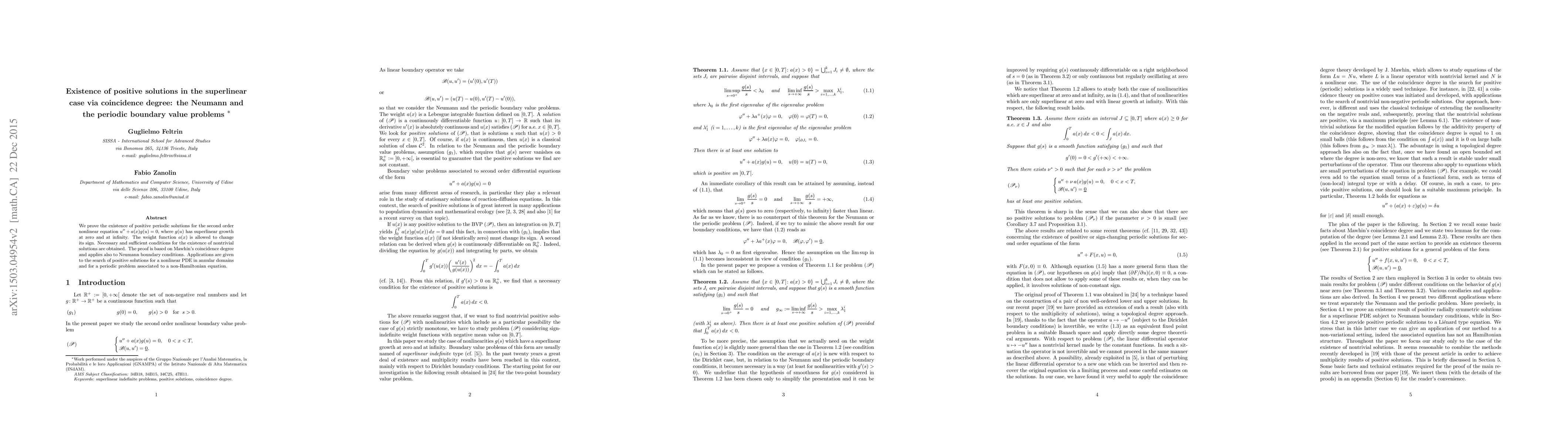 This paper proves the existence of positive periodic solutions for a second-order nonlinear differential equation with superlinear growth using Mawhin's coincidence degree. The method also applies to Neumann boundary conditions and extends to nonlinear PDEs in annular domains and periodic problems associated with non-Hamiltonian equations.
