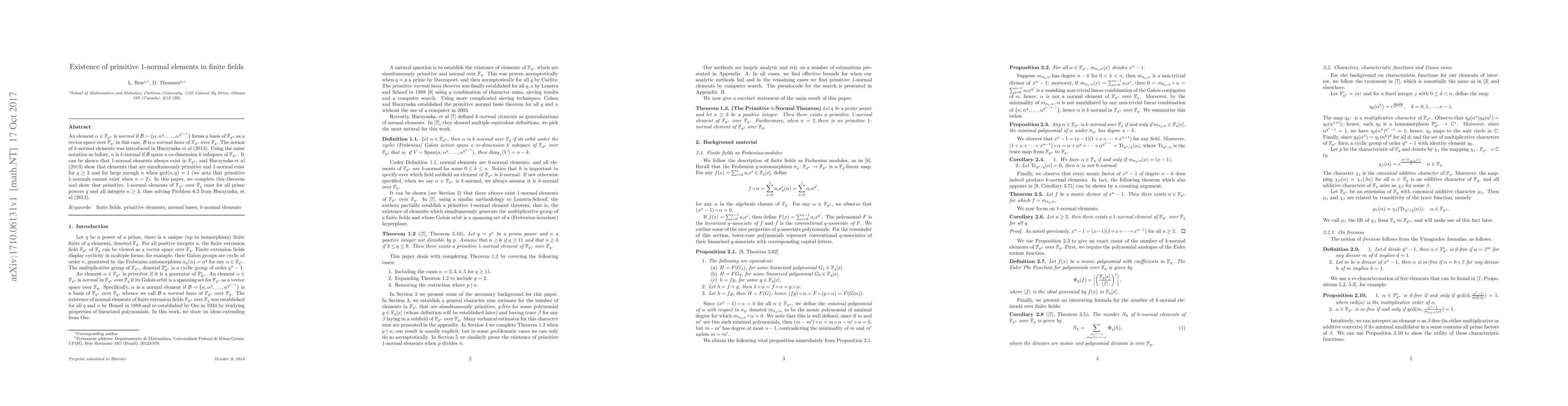 An element $\alpha \in \mathbb F_{q^n}$ is \emph{normal} if $\mathcal{B} = \{\alpha, \alpha^q, \ldots, \alpha^{q^{n-1}}\}$ forms a basis of $\mathbb F_{q^n}$ as a vector space over $\mathbb F_{q}$; in this case, $\mathcal{B}$ is a normal basis of $\mathbb F_{q^n}$ over $\mathbb F_{q}$. The notion of $k$-normal elements was introduced in Huczynska et al (2013). Using the same notation as before, $\alpha$ is $k$-normal if $\mathcal{B}$ spans a co-dimension $k$ subspace of $\mathbb F_{q^n}$. It can be shown that $1$-normal elements always exist in $\mathbb F_{q^n}$, and Huczynska et al (2013) show that elements that are simultaneously primitive and $1$-normal exist for $q \geq 3$ and for large enough $n$ when $\gcd(n,q) = 1$ (we note that primitive $1$-normals cannot exist when $n=2$). In this paper, we complete this theorem and show that primitive, $1$-normal elements of $\mathbb F_{q^n}$ over $\mathbb F_{q}$ exist for all prime powers $q$ and all integers $n \geq 3$, thus solving Problem 6.3 from Huczynska, et al (2013).