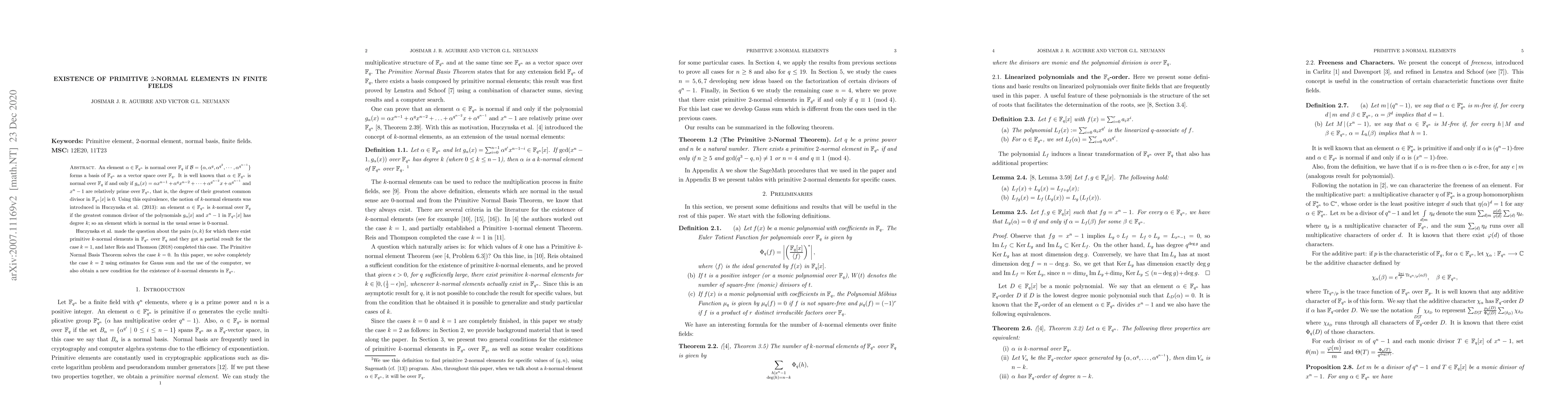 This paper investigates the existence of primitive $2$-normal elements in finite fields $\mathbb{F}_{q^n}$ over $\mathbb{F}_q$. It provides a complete solution for the case where $k=2$, employing estimates for Gauss sum and computational methods, and introduces a new condition for the existence of $k$-normal elements.