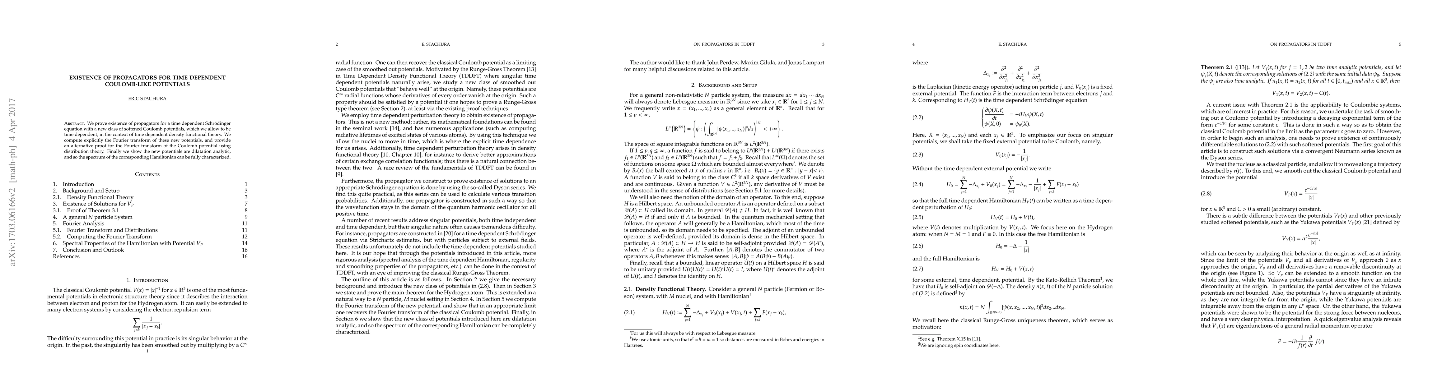 We prove existence of propagators for a time dependent Schr\"odinger equation with a new class of softened Coulomb potentials, which we allow to be time dependent, in the context of time dependent density functional theory. We compute explicitly the Fourier transform of these new potentials, and provide an alternative proof for the Fourier transform of the Coulomb potential using distribution theory. Finally we show the new potentials are dilatation analytic, and so the spectrum of the corresponding Hamiltonian can be fully characterized.