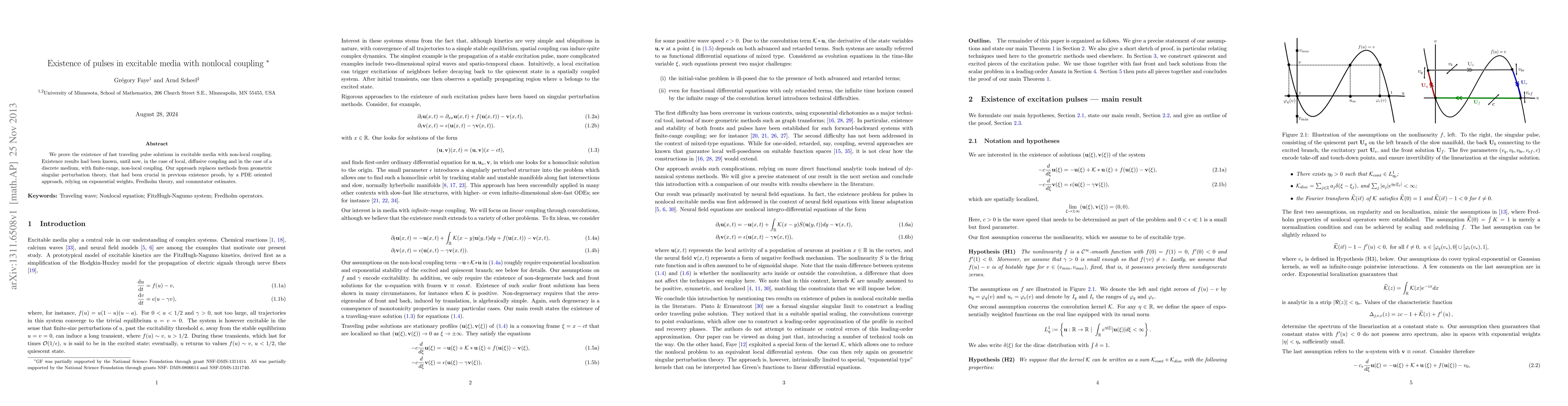 Researchers prove the existence of fast traveling pulses in excitable media with non-local coupling, expanding on previous findings for local and discrete media.