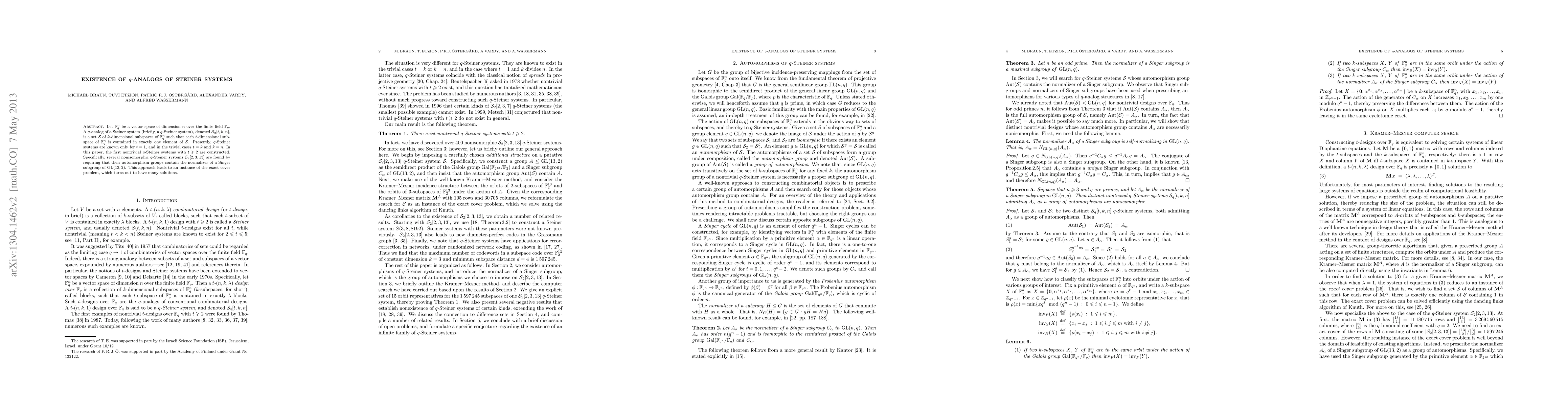 This paper constructs the first nontrivial $q$-analogs of Steiner systems, specifically $q$-Steiner systems $S_2[2,3,13]$, by leveraging the normalizer of a Singer subgroup in $\GL(13,2)$. This approach resolves the exact cover problem, revealing multiple solutions.