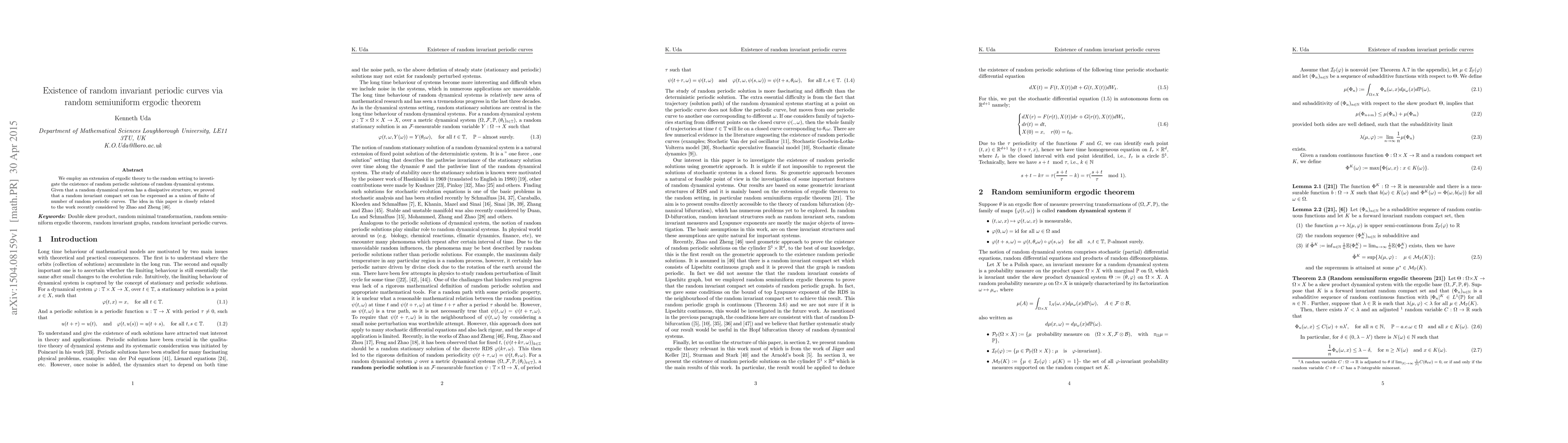 This paper extends ergodic theory to random settings to explore the existence of random periodic solutions in random dynamical systems. It proves that a random invariant compact set can be represented as a union of a finite number of random periodic curves, building on recent work by Zhao and Zheng.