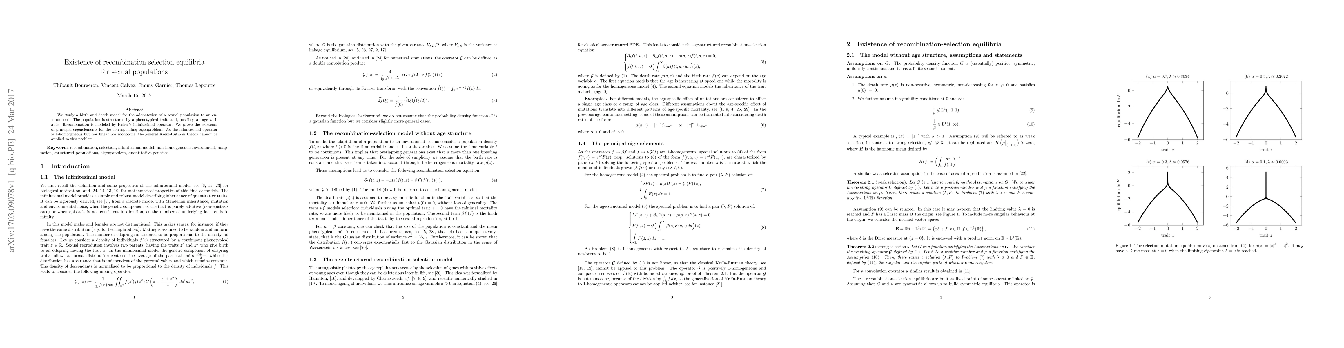 Researchers studied a birth and death model for adaptation in sexual populations, proving the existence of recombination-selection equilibria, which is crucial for understanding evolution and adaptation in changing environments.