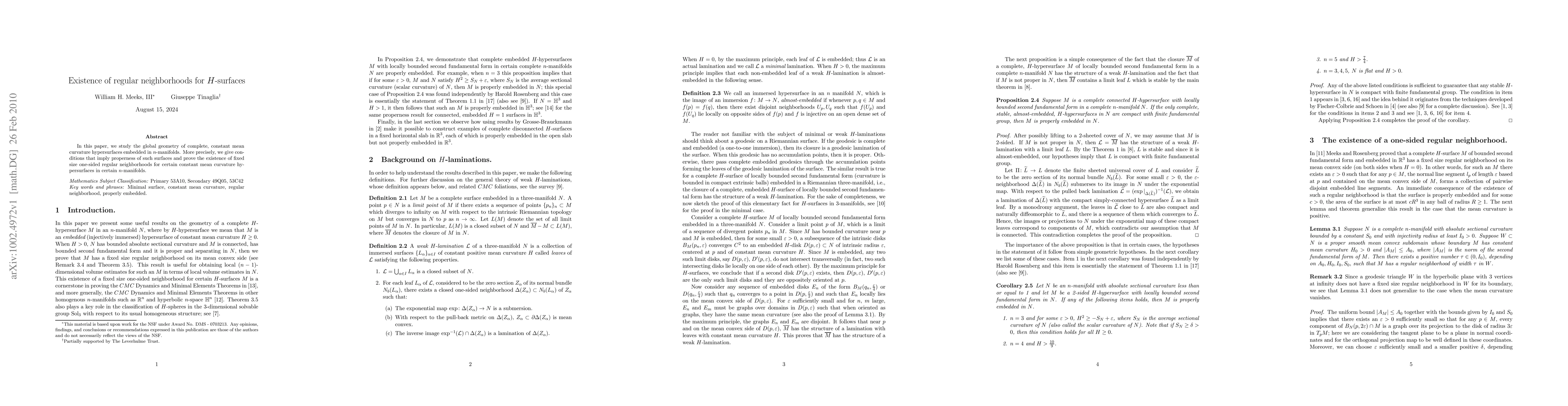 This paper explores the global geometry of complete, constant mean curvature hypersurfaces in n-manifolds, establishing conditions for their properness and proving the existence of fixed size one-sided regular neighborhoods for specific types of these hypersurfaces.