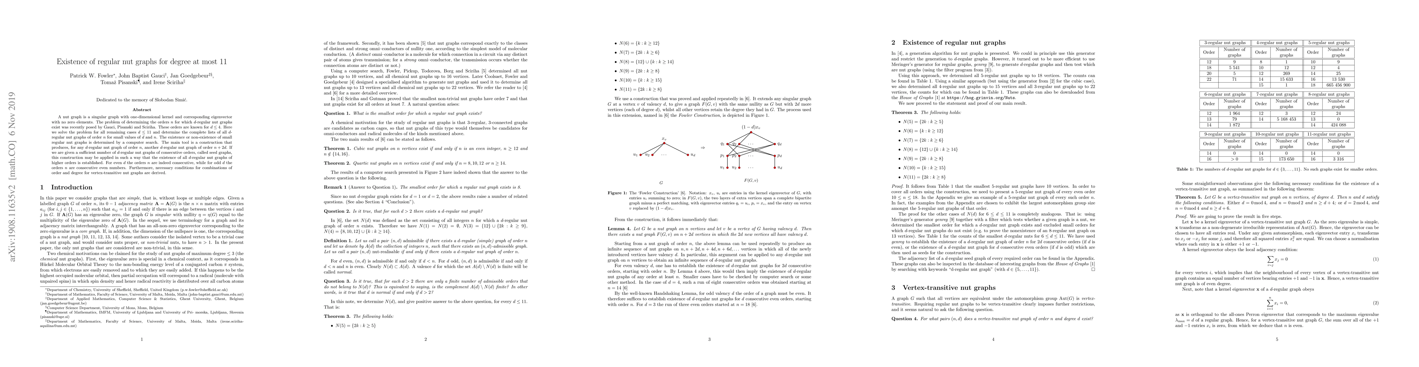 This paper investigates the existence of regular nut graphs for degrees up to 11. Using a computer search and a recursive construction method, the authors determine the complete lists of $d$-regular nut graphs for small values of $d$ and $n$, establishing the existence or non-existence of these graphs for the specified degree ranges.