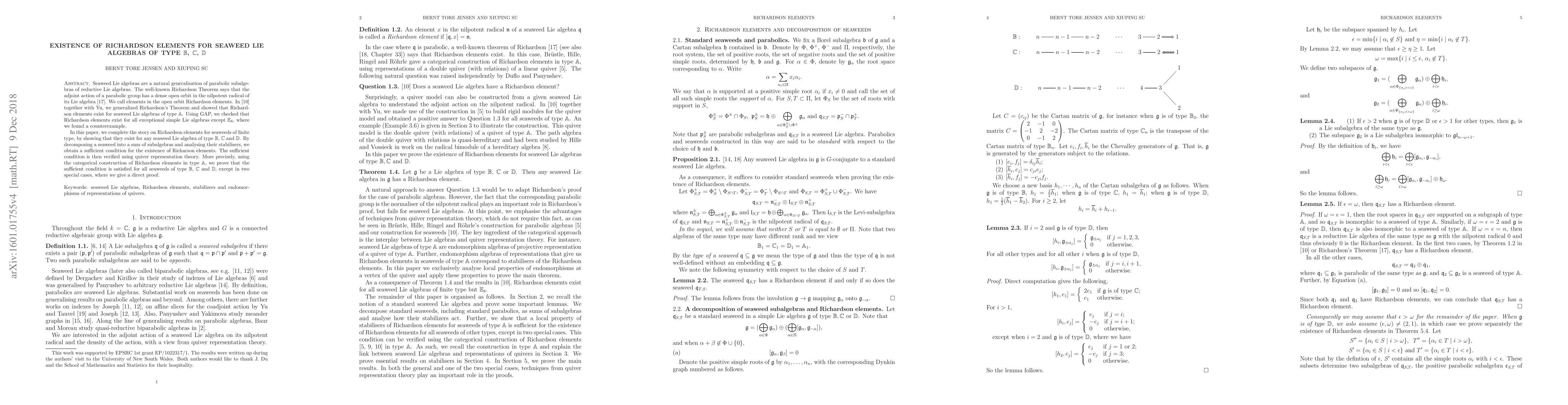 Seaweed Lie algebras are a natural generalisation of parabolic subalgebras of reductive Lie algebras. The well-known Richardson Theorem says that the adjoint action of a parabolic group has a dense open orbit in the nilpotent radical of its Lie algebra \cite{richardson}. We call elements in the open orbit Richardson elements. In \cite{JSY} together with Yu, we generalized Richardson's Theorem and showed that Richardson elements exist for seaweed Lie algebras of type $\mathbb{A}$. Using GAP, we checked that Richardson elements exist for all exceptional simple Lie algebras except $\mathbb{E}_8$, where we found a counterexample. In this paper, we complete the story on Richardson elements for seaweeds of finite type, by showing that they exist for any seaweed Lie algebra of type $\mathbb{B}$, $\mathbb{C}$ and $\mathbb{D}$. By decomposing a seaweed into a sum of subalgebras and analysing their stabilisers, we obtain a sufficient condition for the existence of Richarson elements. The sufficient condition is then verified using quiver representation theory. More precisely, using the categorical construction of Richardson elements in type $\mathbb{A}$, we prove that the sufficient condition is satisfied for all seaweeds of type $\mathbb{B}$, $\mathbb{C}$ and $\mathbb{D}$, except in two special cases, where we give a directproof.