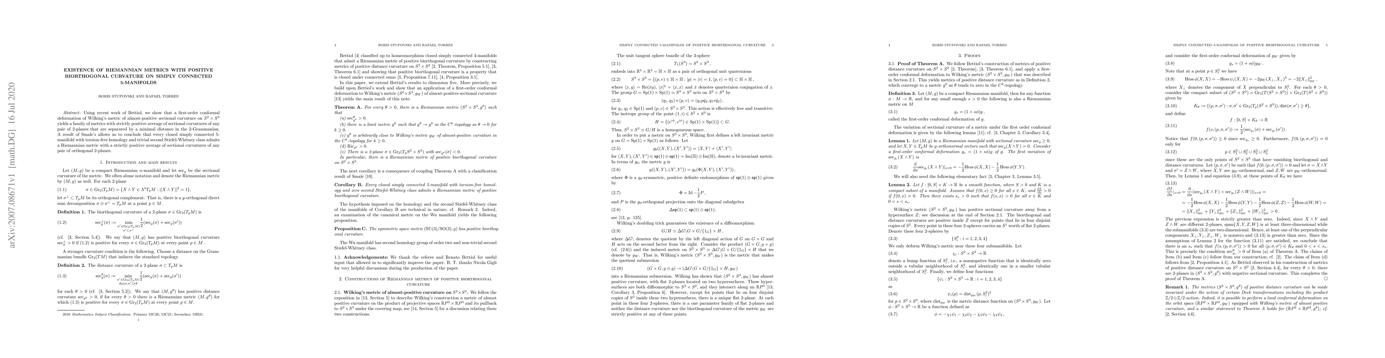 Summary: This paper utilizes recent results by Bettiol to demonstrate the existence of Riemannian metrics on simply connected 5-manifolds with positive biorthogonal curvature, derived from a conformal deformation of Wilking’s metric. The findings extend to any manifold with specified homological properties.