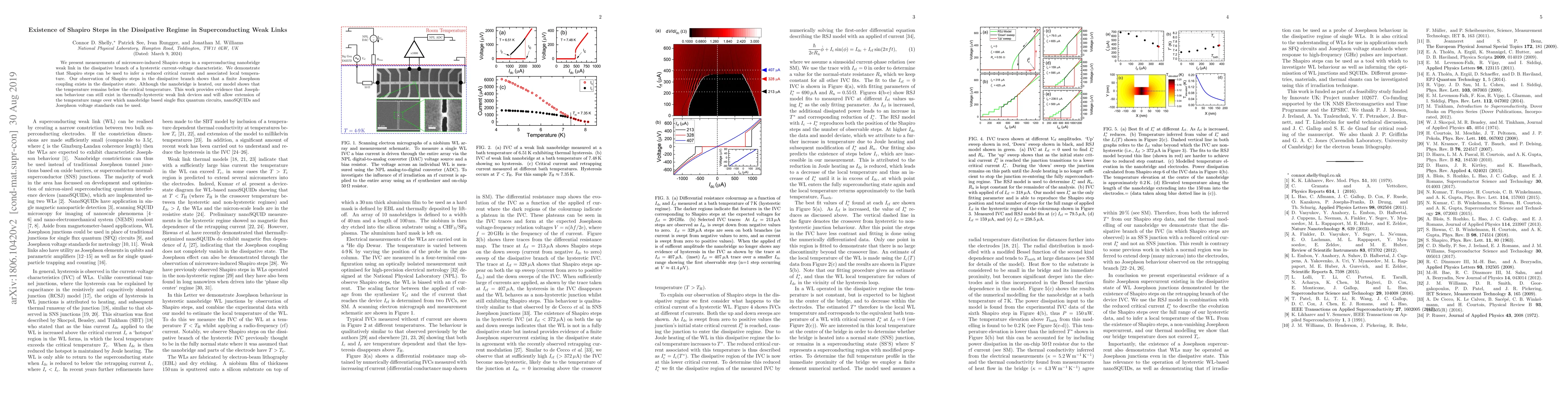 We present measurements of microwave-induced Shapiro steps in a superconducting nanobridge weak link in the dissipative branch of a hysteretic current-voltage characteristic. We demonstrate that Shapiro steps can be used to infer a reduced critical current and associated effective local temperature. Our observation of Shapiro steps in the dissipative branch hows that a finite Josephson coupling exists in the dissipative state and thus can be used to put an upper limit on the effective temperature and on the size of the region that can be heated above the critical temperature. This work provides evidence that Josephson behaviour can still exist in thermally-hysteretic weak link devices and will allow extension of the temperature ranges that nanobridge based single flux quantum circuits, nanoSQUIDs and Josephson voltage standards can be used.