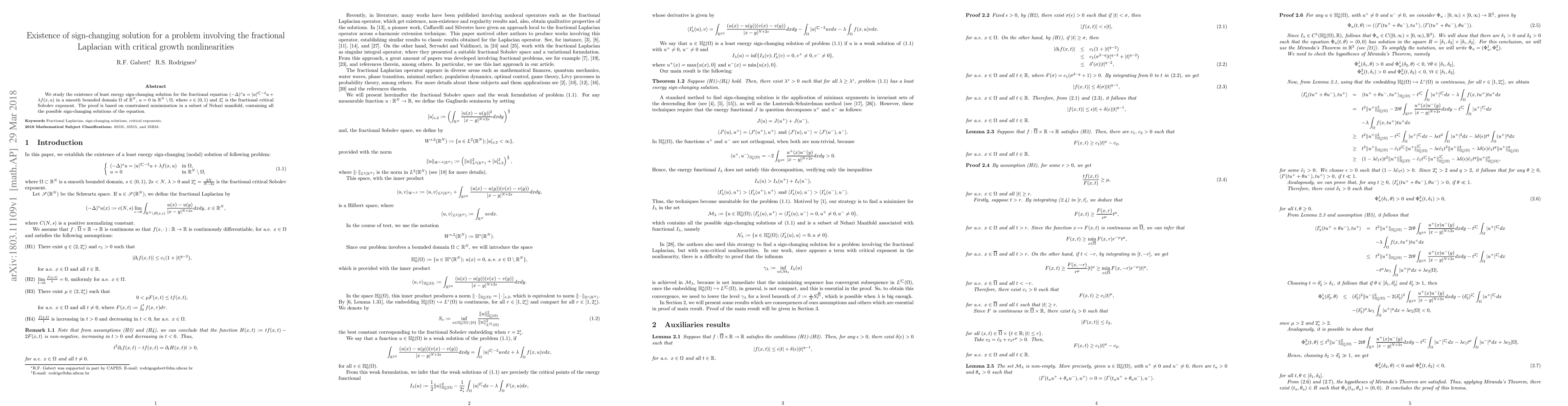 We study the existence of least energy sign-changing solution for the fractional equation $(-\Delta)^{s} u=|u|^{2_{s}^{*}-2}u+\lambda f(x,u)$ in a smooth bounded domain $\Omega$ of $\mathbb{R}^{N},$ $u=0$ in $\mathbb{R}^{N}\setminus \Omega$, where $s\in (0,1)$ and $2_{s}^{*}$ is the fractional critical Sobolev exponent. The proof is based on constrained minimization in a subset of Nehari manifold, containing all the possible sign-changing solutions of the equation.