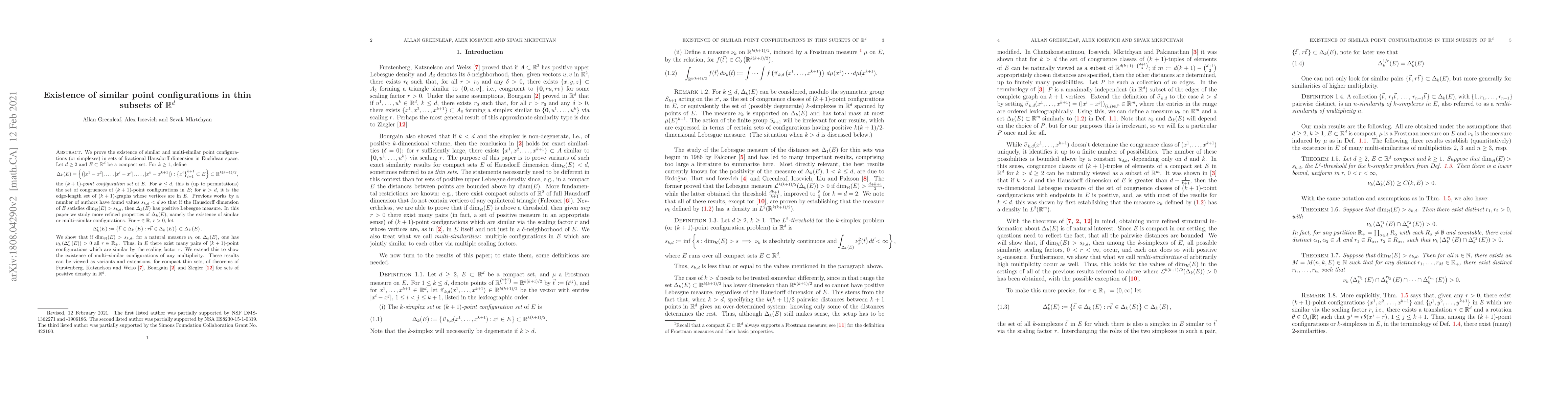{\Bbb R}^{k(k+1)/2}, $$ the {\it $(k+1)$-point configuration set} of $E$. For