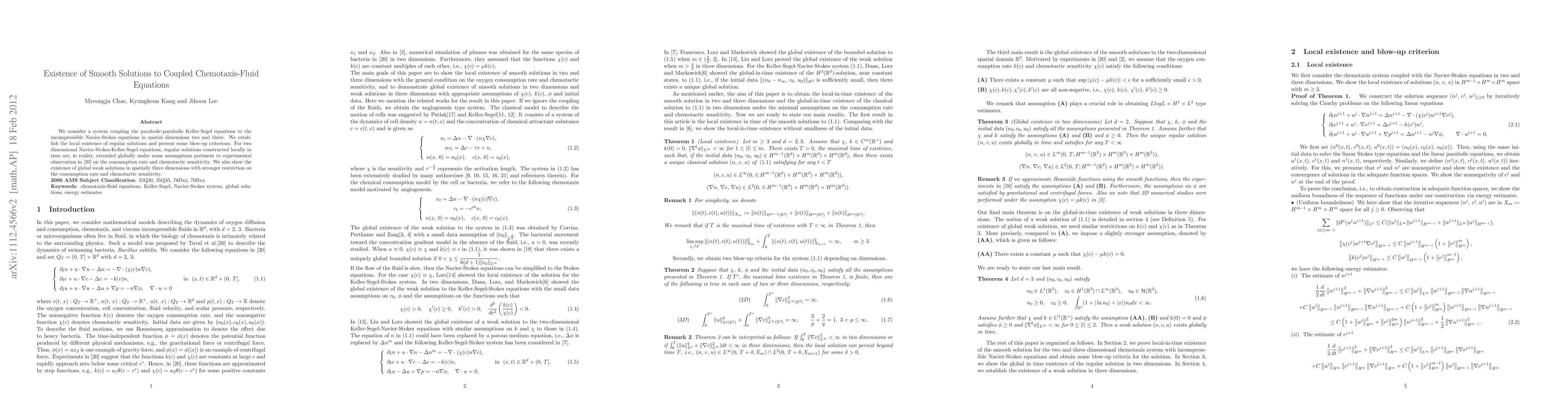 Researchers establish the existence of smooth solutions to a coupled system of chemotaxis and fluid equations in 2D and 3D spatial dimensions, with implications for understanding biological phenomena such as cell migration and consumption rates.