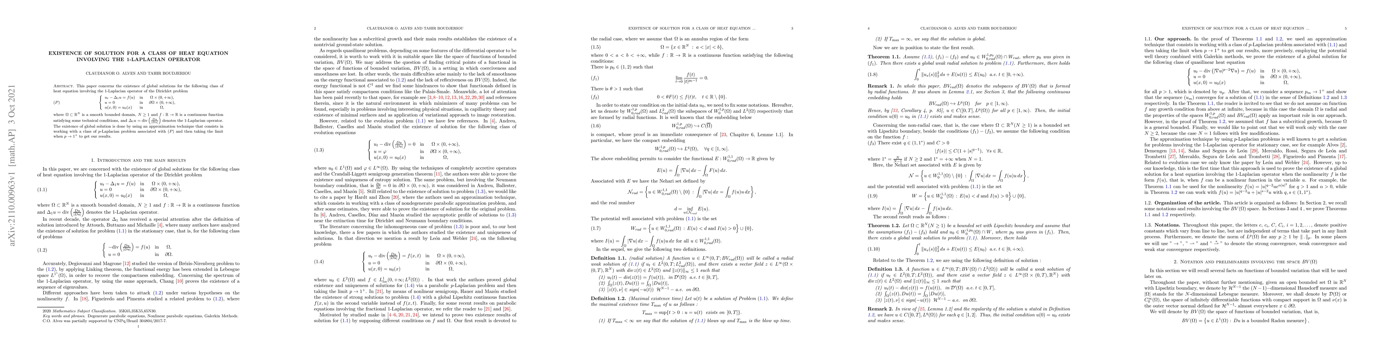 This paper investigates the existence of global solutions for a heat equation involving the 1-Laplacian operator, proving the existence through an approximation technique using $p$-Laplacian problems and taking the limit as $p \to 1^+$.
