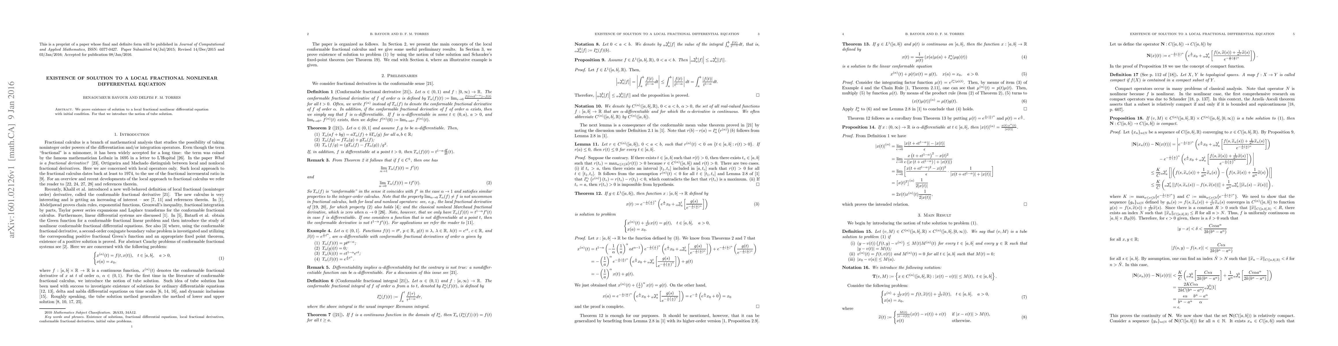We prove existence of solution to a local fractional nonlinear differential equation with initial condition. For that we introduce the notion of tube solution.