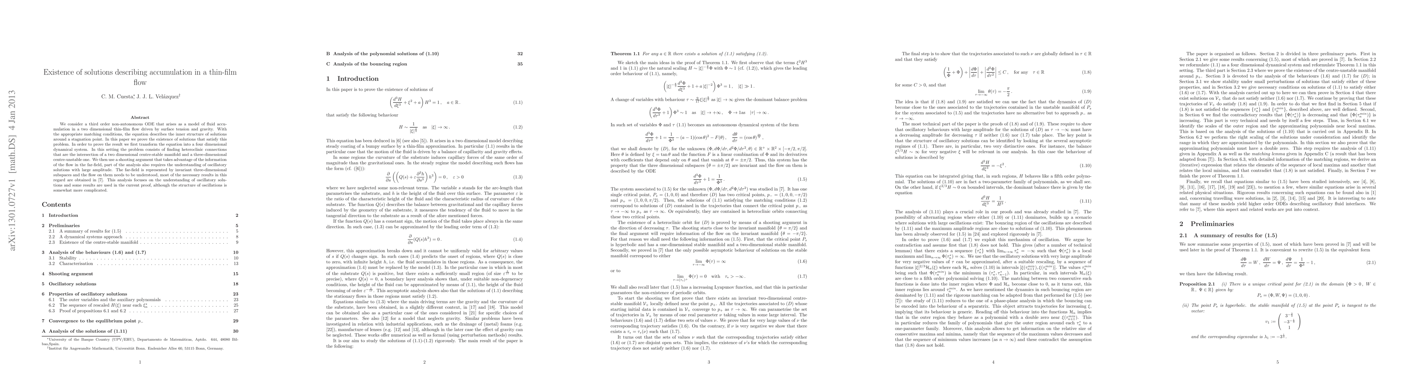 Researchers prove the existence of solutions for a mathematical model describing fluid accumulation in thin-film flow, driven by surface tension and gravity, using a combination of dynamical systems analysis and shooting arguments.