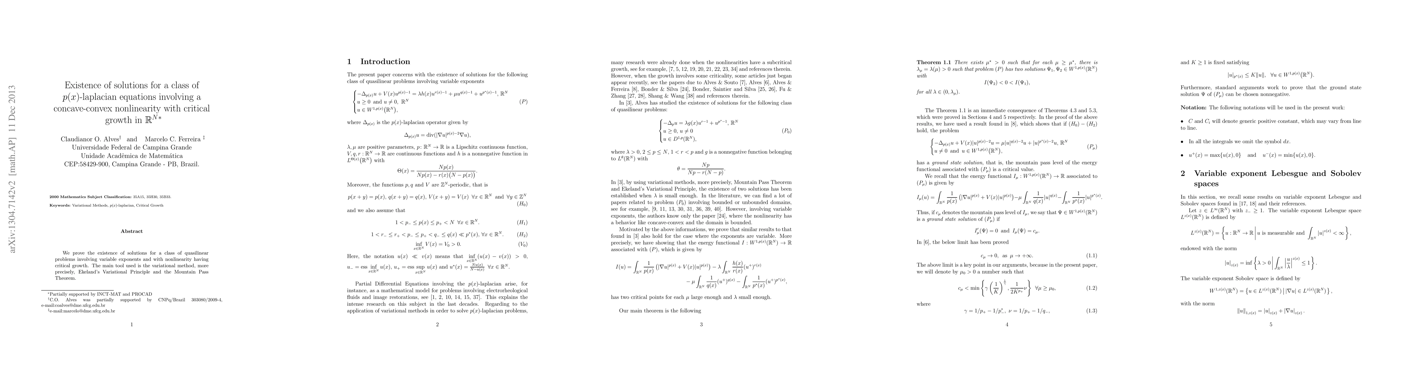 We prove the existence of solutions for a class of quasilinear problems involving variable exponents and with nonlinearity having critical growth. The main tool used is the variational method, more precisely, Ekeland's Variational Principle and the Mountain Pass Theorem.