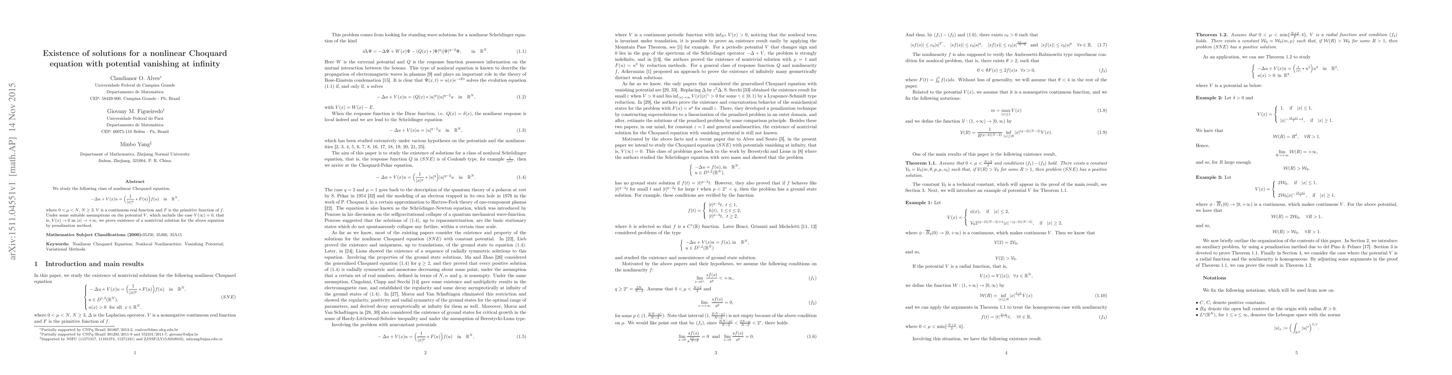 This paper proves the existence of nontrivial solutions for a nonlinear Choquard equation under certain assumptions on the potential V, including V(x) approaching 0 as |x| approaches infinity.