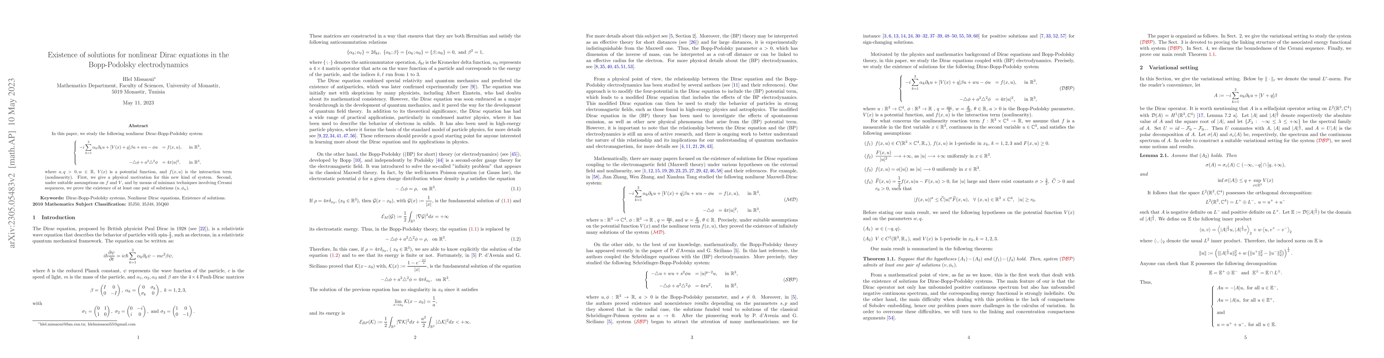 The paper presents a novel application of minimax techniques and Cerami sequences to prove the existence of solutions for a nonlinear Dirac-Bopp-Podolsky system.
