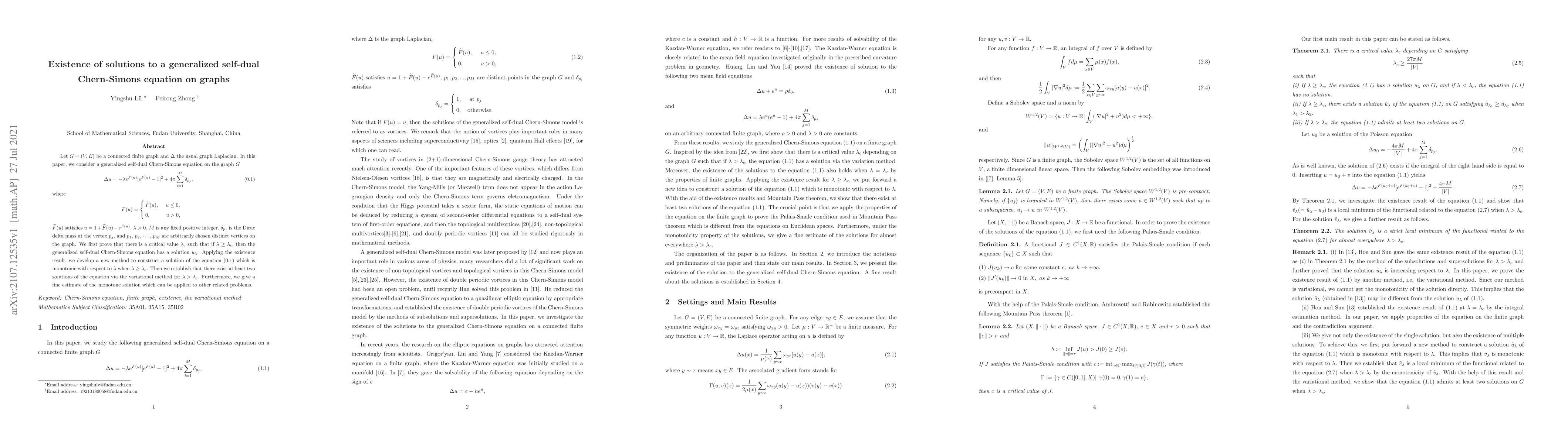 This paper investigates the existence of solutions to a generalized self-dual Chern-Simons equation on a connected finite graph $G$. It proves that for a critical value $\lambda_c$, there exists a solution $u_\lambda$ when $\lambda \geq \lambda_c$, and develops a new method to construct such solutions. The paper also establishes the existence of at least two solutions via variational methods for $\lambda > \lambda_c$.