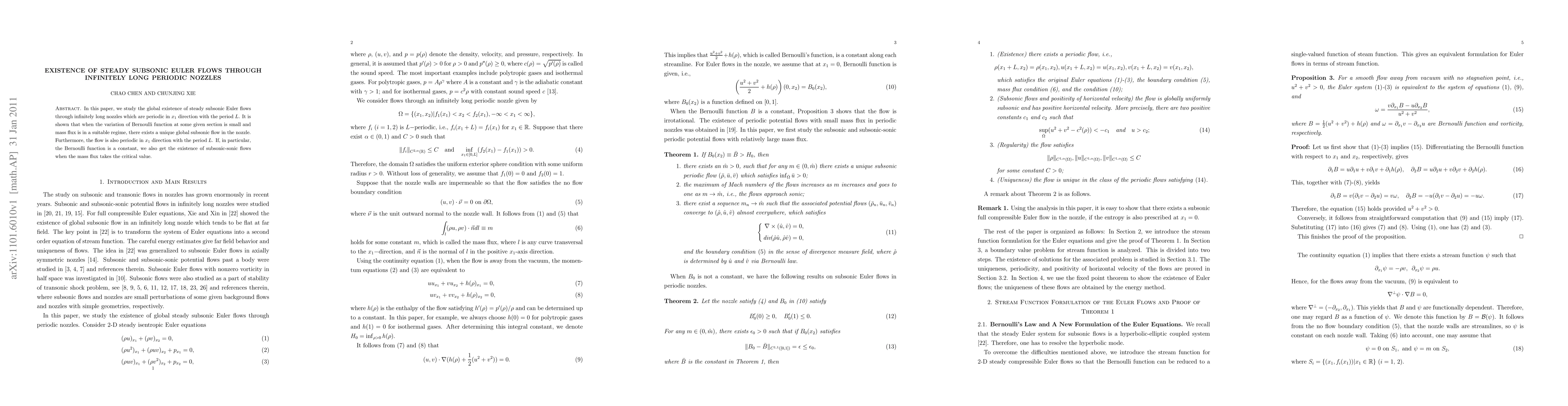 This paper establishes the global existence of steady subsonic Euler flows through infinitely long, periodically structured nozzles. It confirms that under small variations in the Bernoulli function and suitable mass flux conditions, a unique, periodic subsonic flow exists, and identifies critical mass flux values for subsonic-sonic transitions.