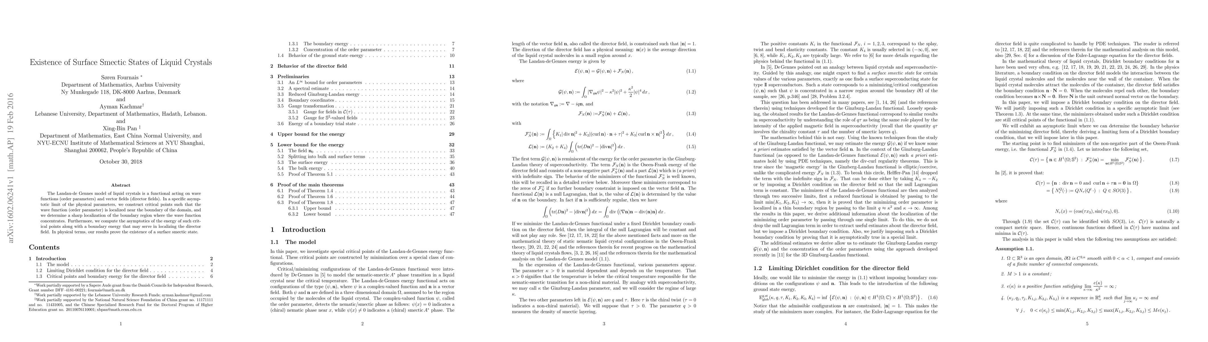 The Landau-de Gennes model of liquid crystals is a functional acting on wave functions (order parameters) and vector fields (director fields). In a specific asymptotic limit of the physical parameters, we construct critical points such that the wave function (order parameter) is localized near the boundary of the domain, and we determine a sharp localization of the boundary region where the wave function concentrates. Furthermore, we compute the asymptotics of the energy of such critical points along with a boundary energy that may serve in localizing the director field. In physical terms, our results prove the existence of a surface smectic state.