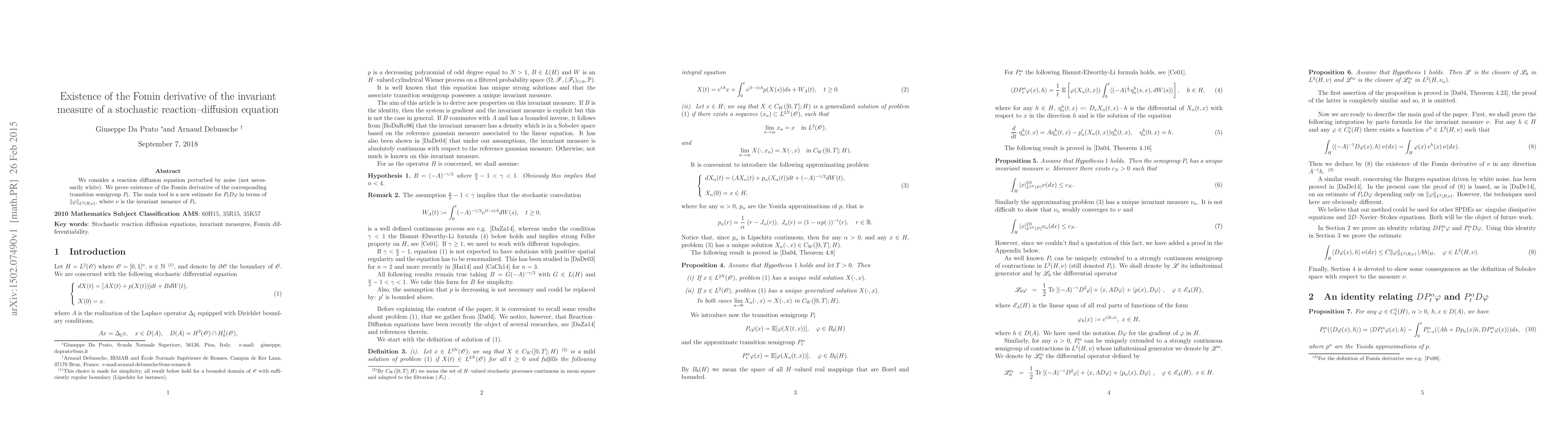 Summary: This paper establishes the existence of the Fomin derivative of the invariant measure for a stochastic reaction-diffusion equation, utilizing a novel estimate relating the transition semigroup $P_t$ and the $L^2$ norm of functions under the invariant measure $\nu$.