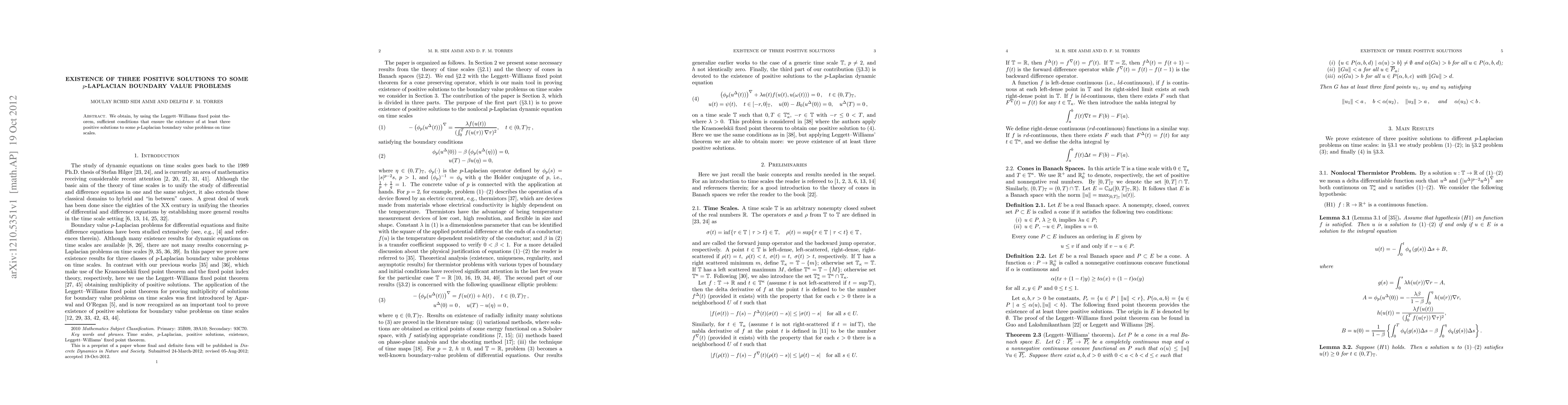 This paper utilizes the Leggett-Williams fixed point theorem to establish conditions guaranteeing the existence of three positive solutions for certain $p$-Laplacian boundary value problems defined on time scales. The results demonstrate the method's applicability in obtaining multiple solutions for complex differential equations.