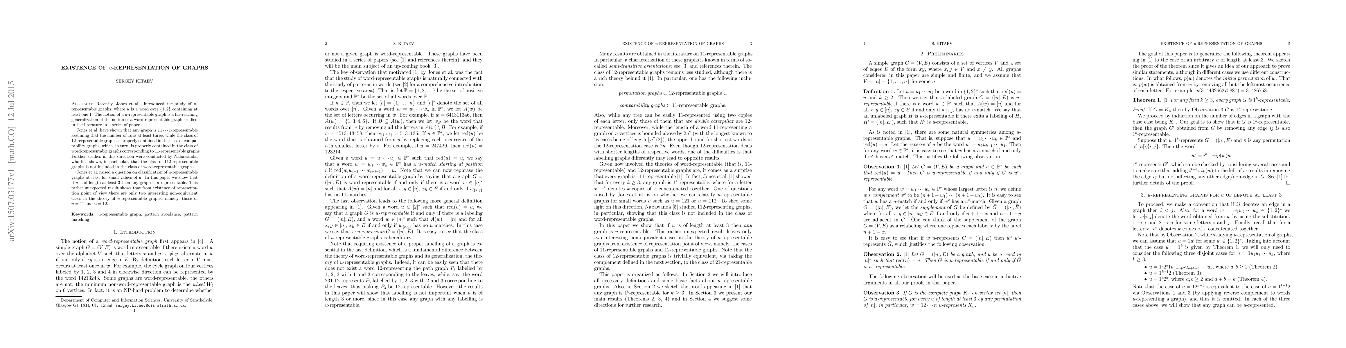 This paper explores the existence of $u$-representations for graphs, where $u$ is a word over $\{1,2\}$ containing at least one 1. It demonstrates that any graph is $u$-representable if $u$ is of length at least 3, highlighting that only $u=11$ and $u=12$ are interesting cases in this theory.