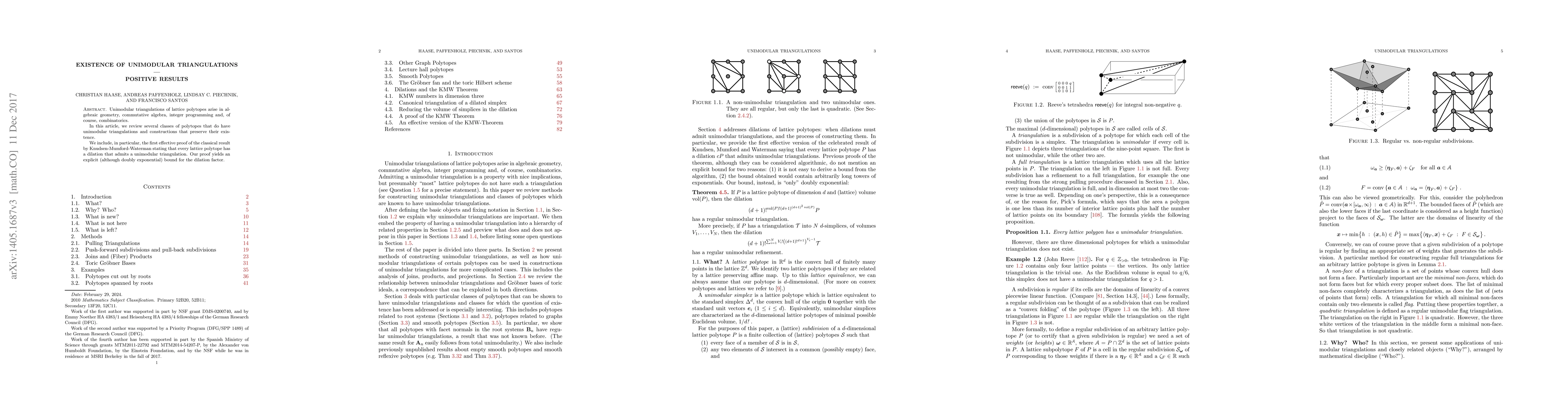 This paper reviews classes of lattice polytopes that possess unimodular triangulations and constructs methods that maintain their existence. It notably provides an effective proof for the Knudsen-Mumford-Waterman theorem, establishing an explicit (doubly exponential) bound for the dilation factor that admits a unimodular triangulation for any lattice polytope.
