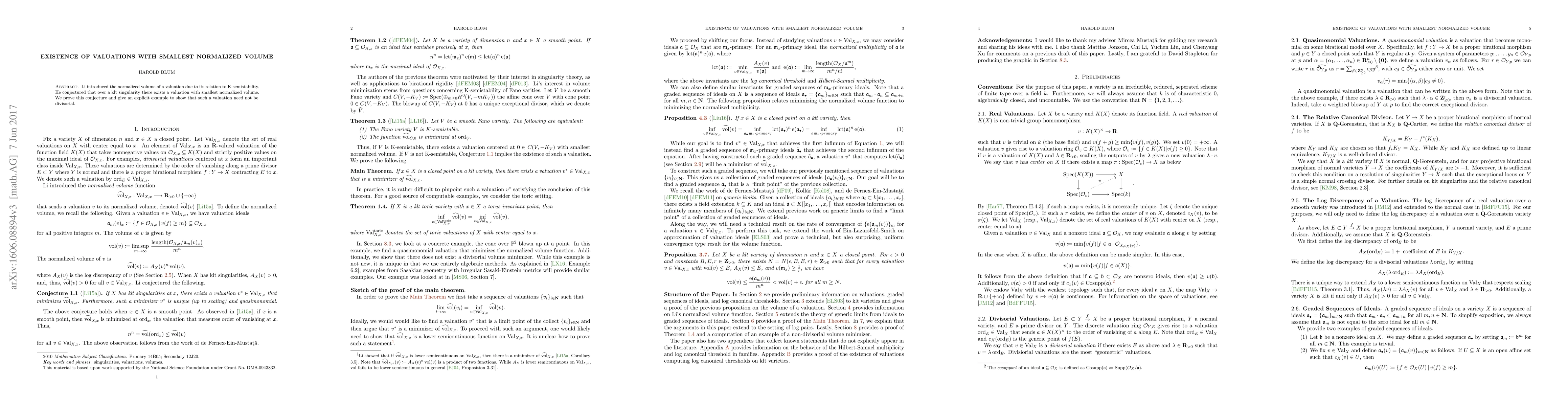 This paper proves Li's conjecture that over a klt singularity, there exists a valuation with the smallest normalized volume, and it demonstrates that this valuation can be non-divisorial.
