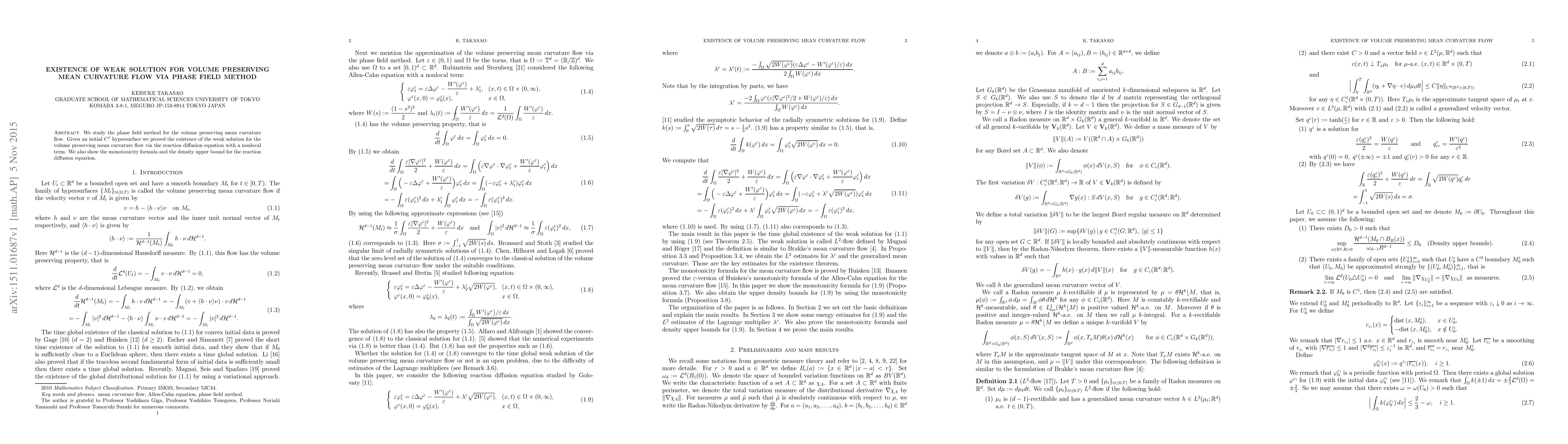 The paper introduces a novel approach to prove the existence of weak solutions for volume preserving mean curvature flow using the phase field method and reaction-diffusion equations with nonlocal terms.