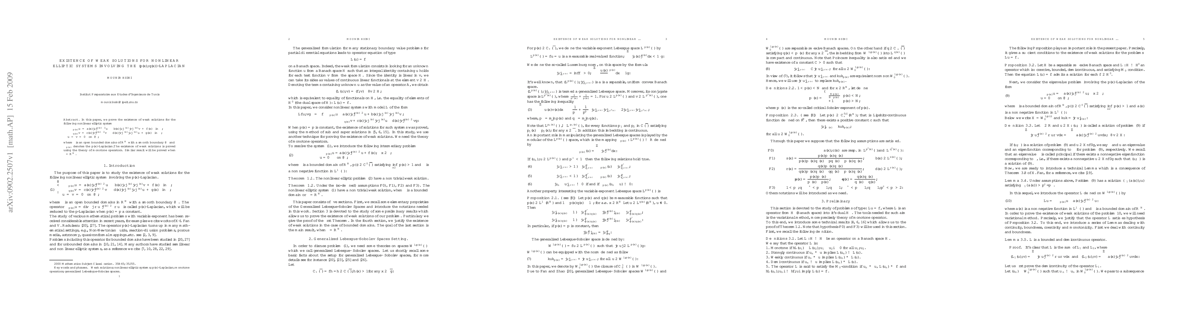 This paper establishes the existence of weak solutions for a nonlinear elliptic system involving the (p(x), q(x))-Laplacian using the theory of monotone operators. The results are applicable to both bounded domains and the whole space $\mathbb{R}^N$.