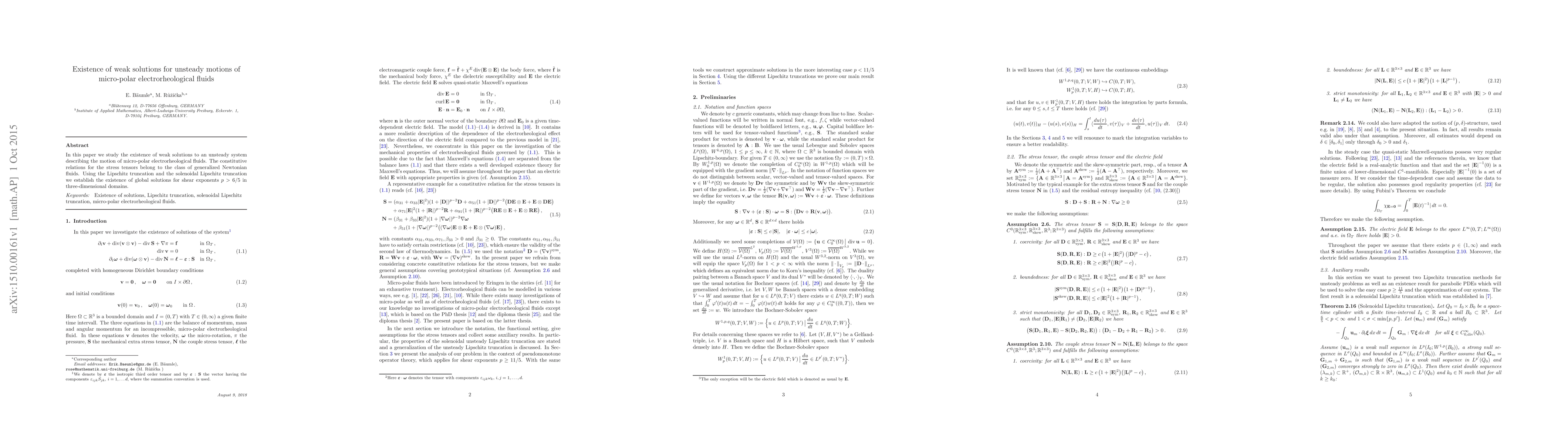 In this paper we study the existence of weak solutions to an unsteady system describing the motion of micro-polar electrorheological fluids. The constitutive relations for the stress tensors belong to the class of generalized Newtonian fluids. Using the Lipschitz truncation and the solenoidal Lipschitz truncation we establish the existence of global solutions for shear exponents $p>6/5$ in three-dimensional domains.