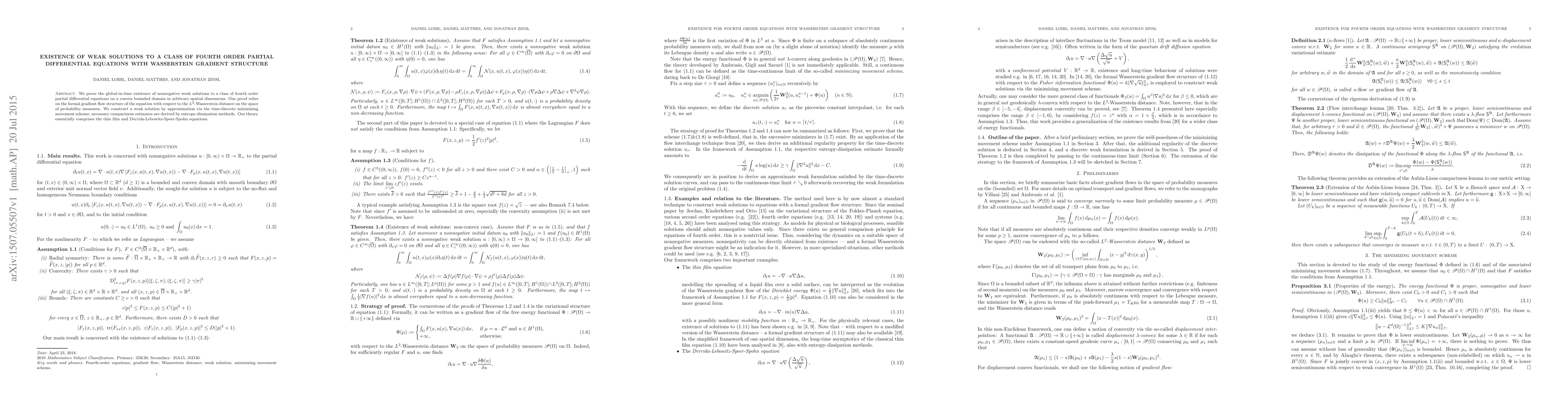 We prove the global-in-time existence of nonnegative weak solutions to a class of fourth order partial differential equations on a convex bounded domain in arbitrary spatial dimensions. Our proof relies on the formal gradient flow structure of the equation with respect to the $L^2$-Wasserstein distance on the space of probability measures. We construct a weak solution by approximation via the time-discrete minimizing movement scheme; necessary compactness estimates are derived by entropy-dissipation methods. Our theory essentially comprises the thin film and Derrida-Lebowitz-Speer-Spohn equations.