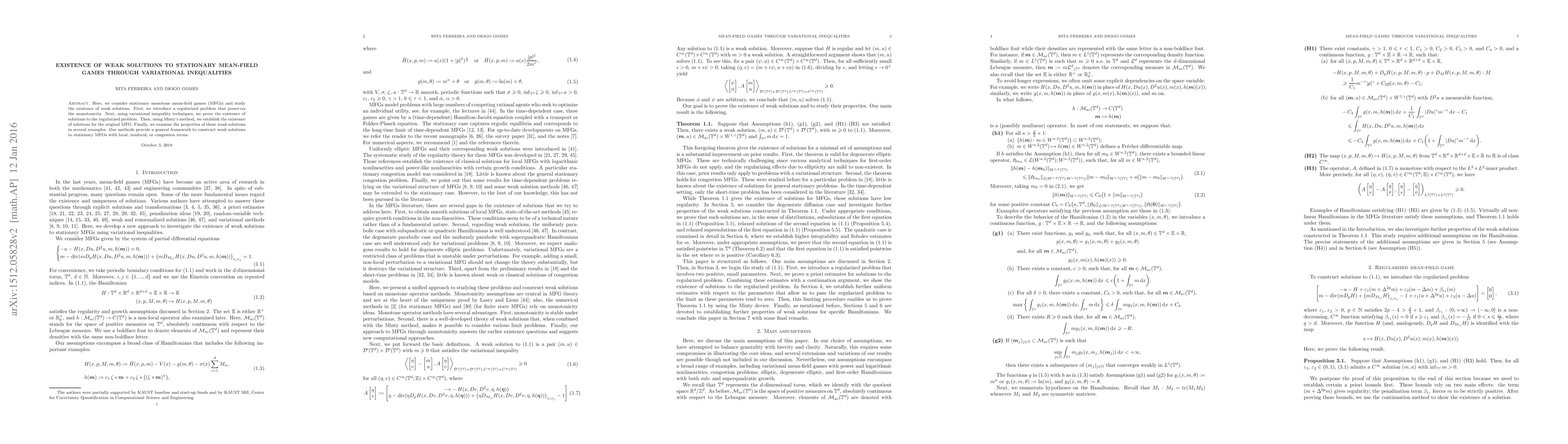 This paper establishes the existence of weak solutions to stationary monotone mean-field games (MFGs) using variational inequalities and Minty's method. It introduces a regularized problem to maintain monotonicity and proves the existence of solutions for both the regularized and original MFG.