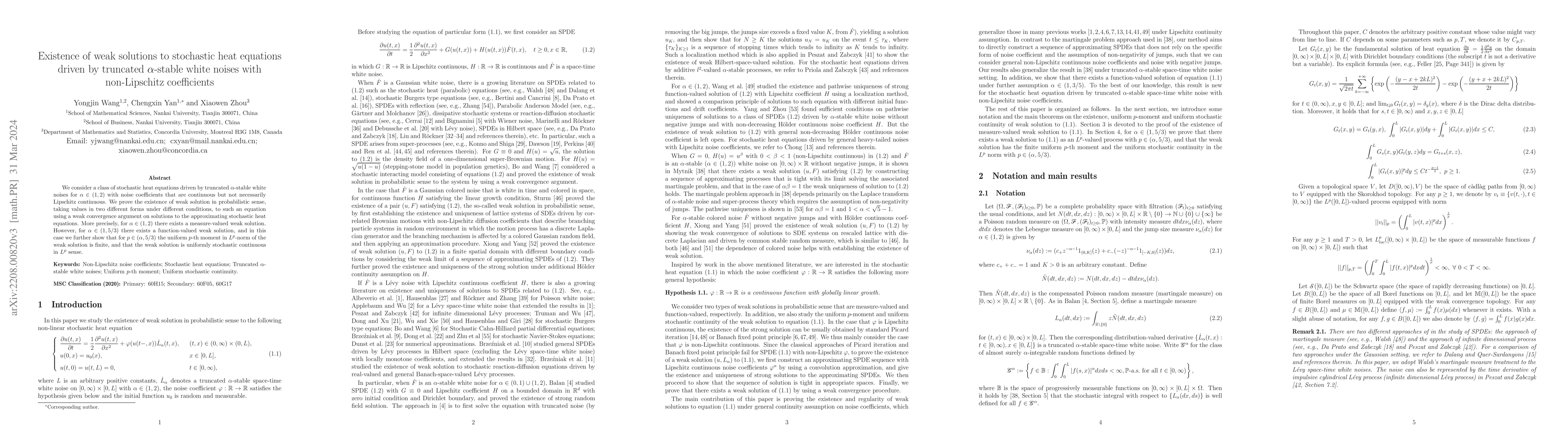 This paper proves the existence of weak solutions to stochastic heat equations driven by truncated $\alpha$-stable white noises for $1 < \alpha < 2$, under non-Lipschitz coefficients satisfying linear growth. The solutions depend on the range of $\alpha$, with different properties for $1 < \alpha < 5/3$.