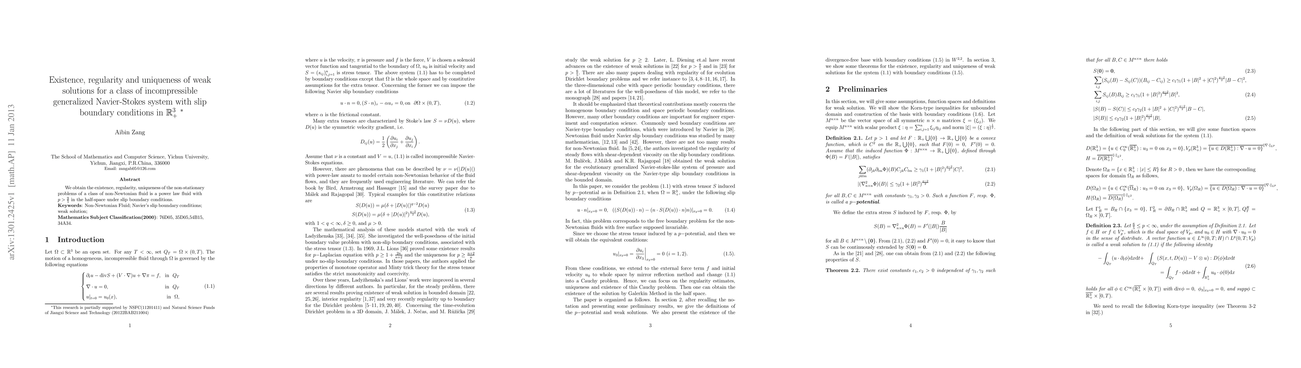 We obtain the existence, regularity, uniqueness of the non-stationary problems of a class of non-Newtonian fluid is a power law fluid with $p>9/5$ in the half-space under slip boundary conditions.