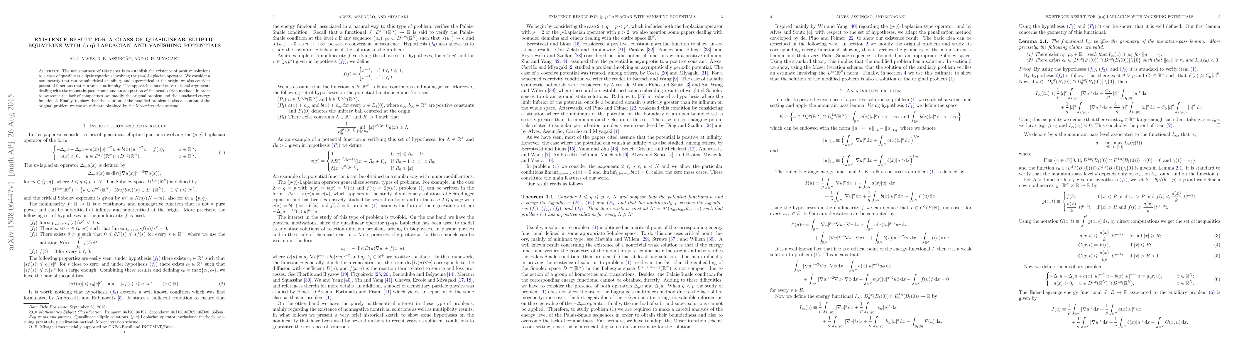 The main purpose of this paper is to establish the existence of positive solutions to a class of quasilinear elliptic equations involving the (p-q)-Laplacian operator. We consider a nonlinearity that can be subcritical at infinity and supercritical at the origin; we also consider potential functions that can vanish at infinity. The approach is based on variational arguments dealing with the mountain-pass lemma and an adaptation of the penalization method. In order to overcome the lack of compactness we modify the original problem and the associated energy functional. Finally, to show that the solution of the modified problem is also a solution of the original problem we use an estimate obtained by the Moser iteration scheme.