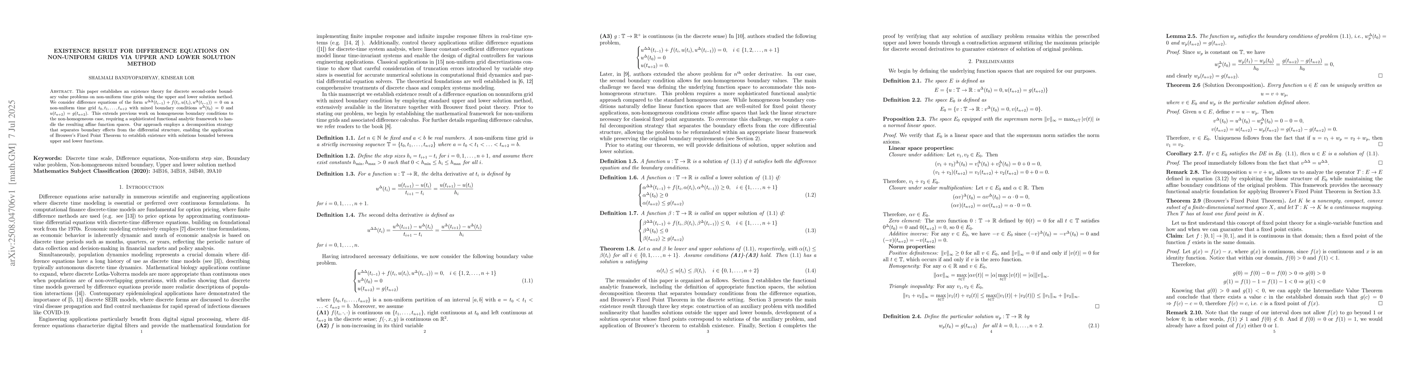 This paper establishes an existence theory for discrete second-order boundary value problems on non-uniform time grids using the upper and lower solution method. We consider difference equations of the form $u^{\Delta\Delta}(t_{i-1}) + f(t_i, u(t_i), u^\Delta(t_{i-1})) = 0$ on a non-uniform time grid ${t_0, t_1, \ldots, t_{n+2}}$ with mixed boundary conditions $u^\Delta(t_0) = 0$ and $u(t_{n+2}) = g(t_{n+2})$. This extends previous work on homogeneous boundary conditions to the non-homogeneous case, requiring a sophisticated functional analytic framework to handle the resulting affine function spaces. Our approach employs a decomposition strategy that separates boundary effects from the differential structure, enabling the application of Brouwer's Fixed Point Theorem to establish existence with solutions bounded between upper and lower functions.