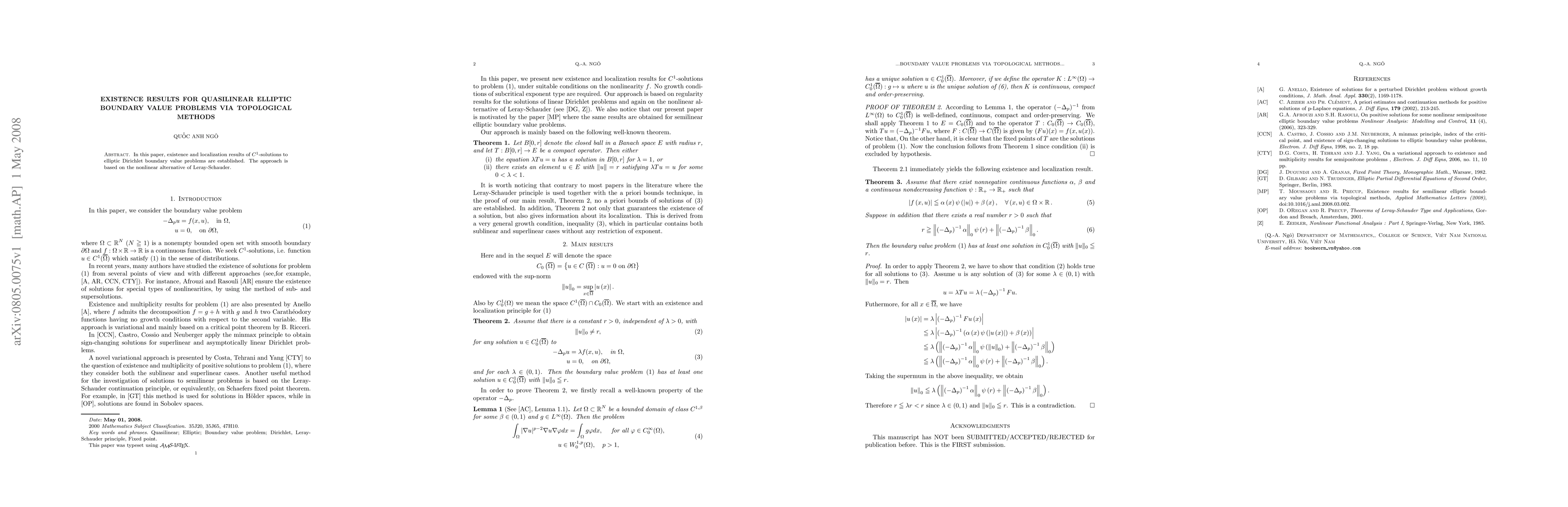 This paper establishes existence and localization results for $C^1$-solutions to quasilinear elliptic Dirichlet boundary value problems using the nonlinear alternative of Leray-Schauder and topological methods. The approach leverages advanced topological techniques to ensure the solutions' existence.